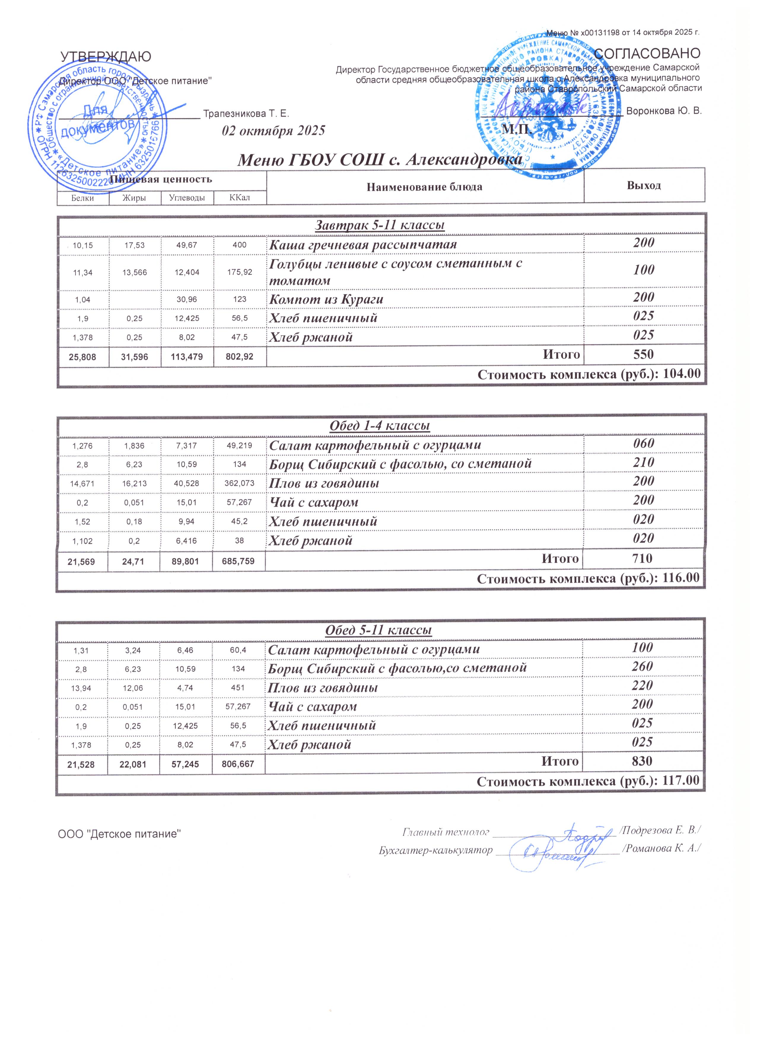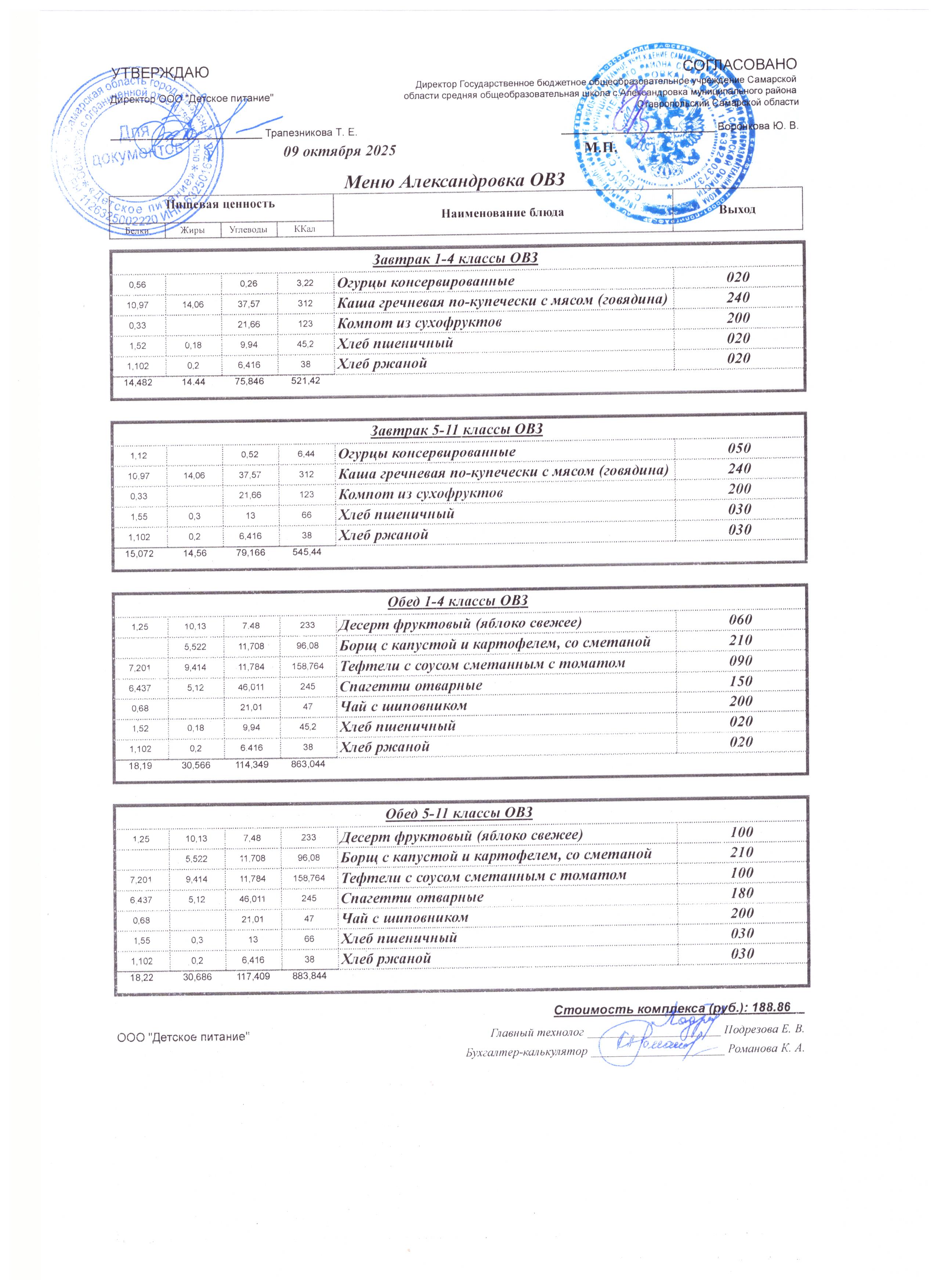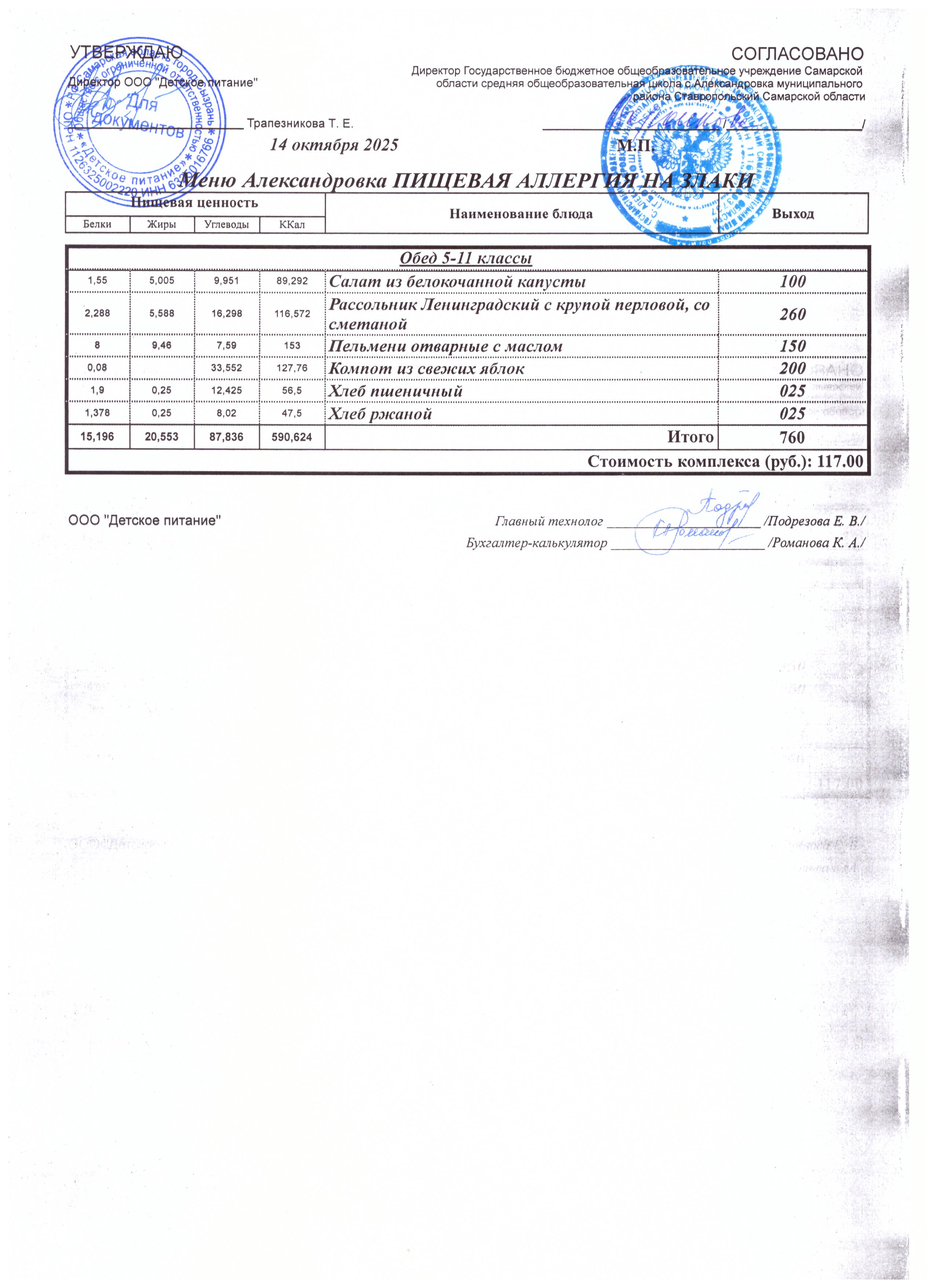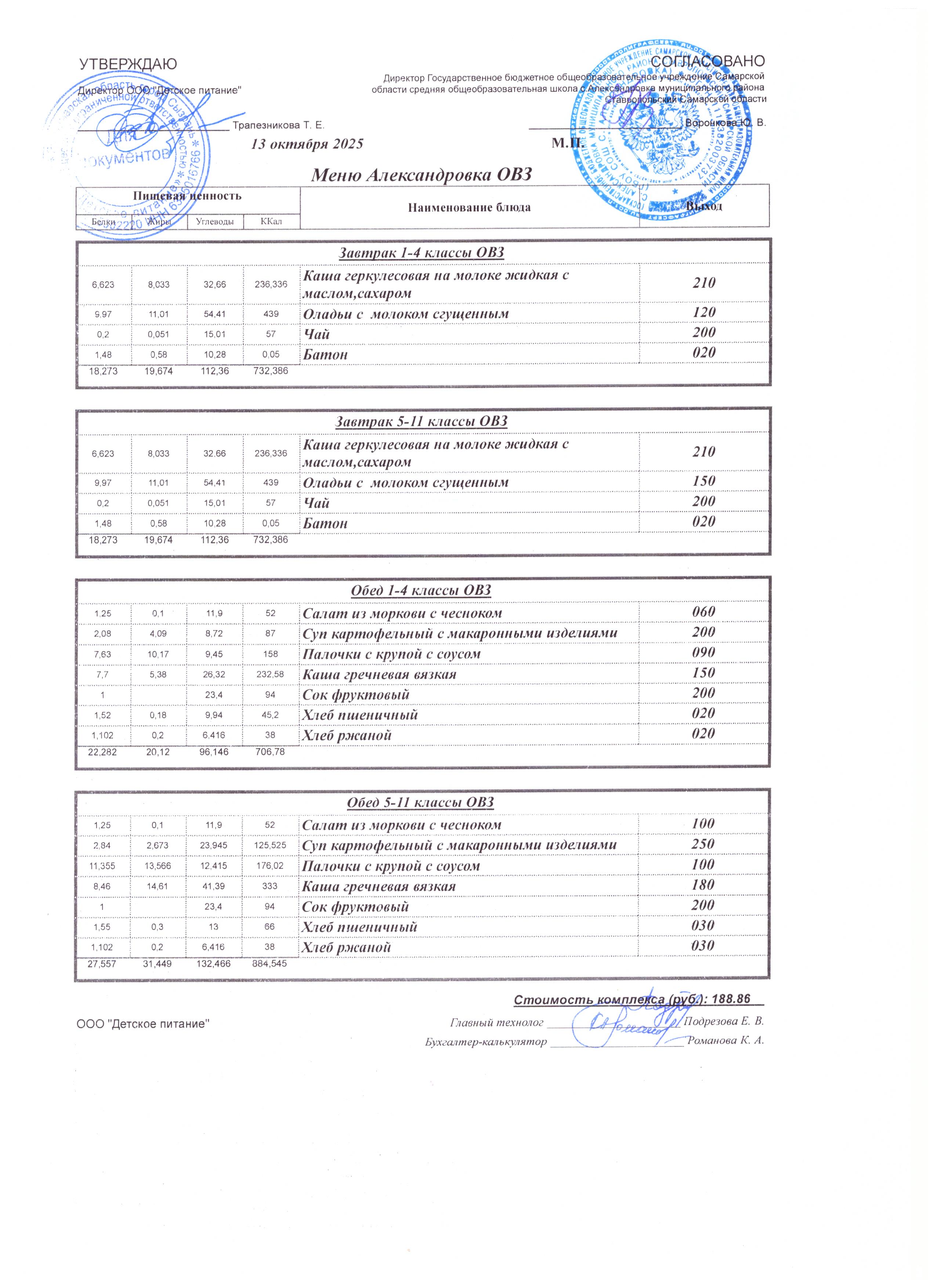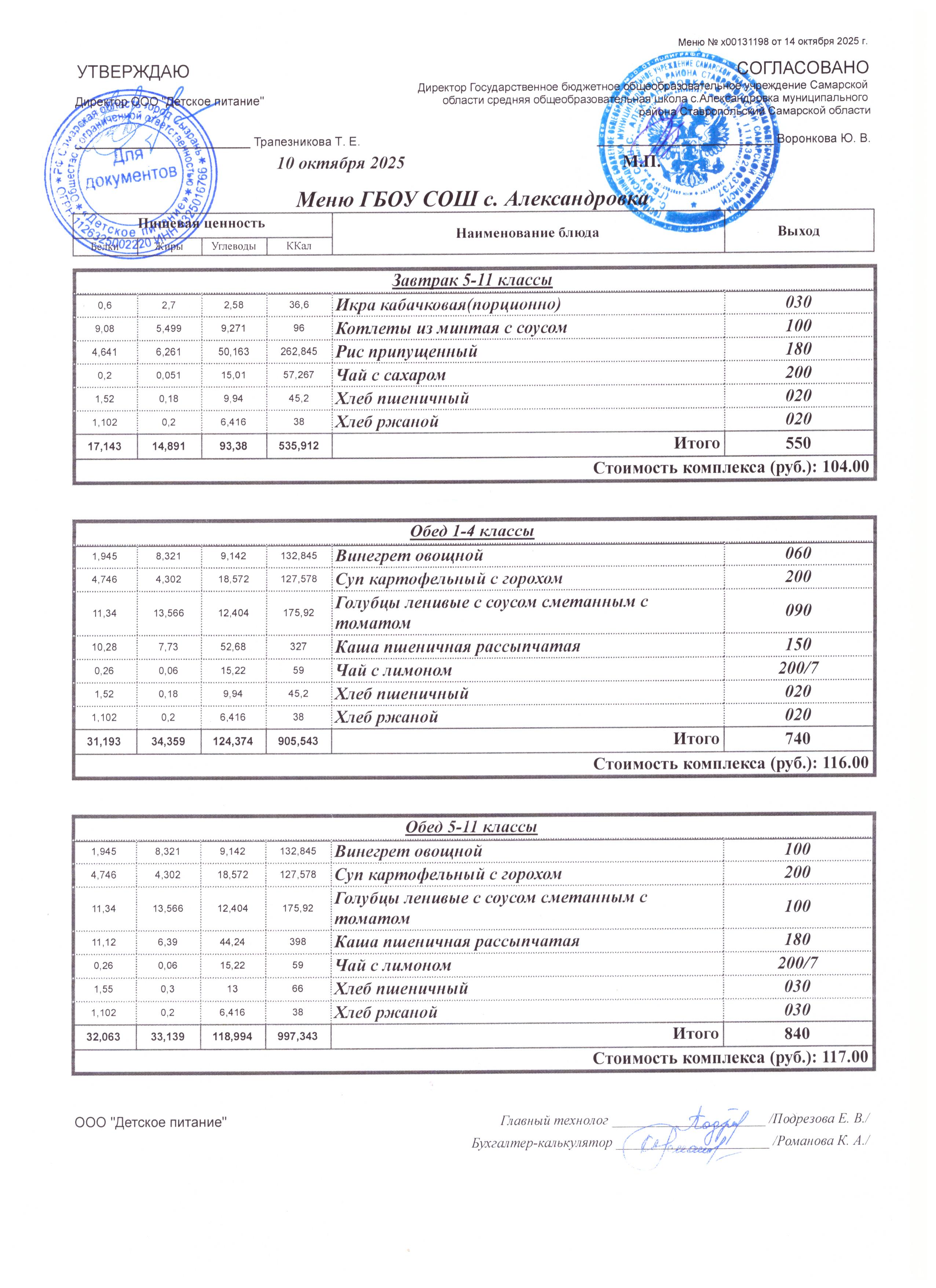 2-х недельное цикличное меню согласованное с территориальным управлением Роспотребнадзора и родительской общественностью