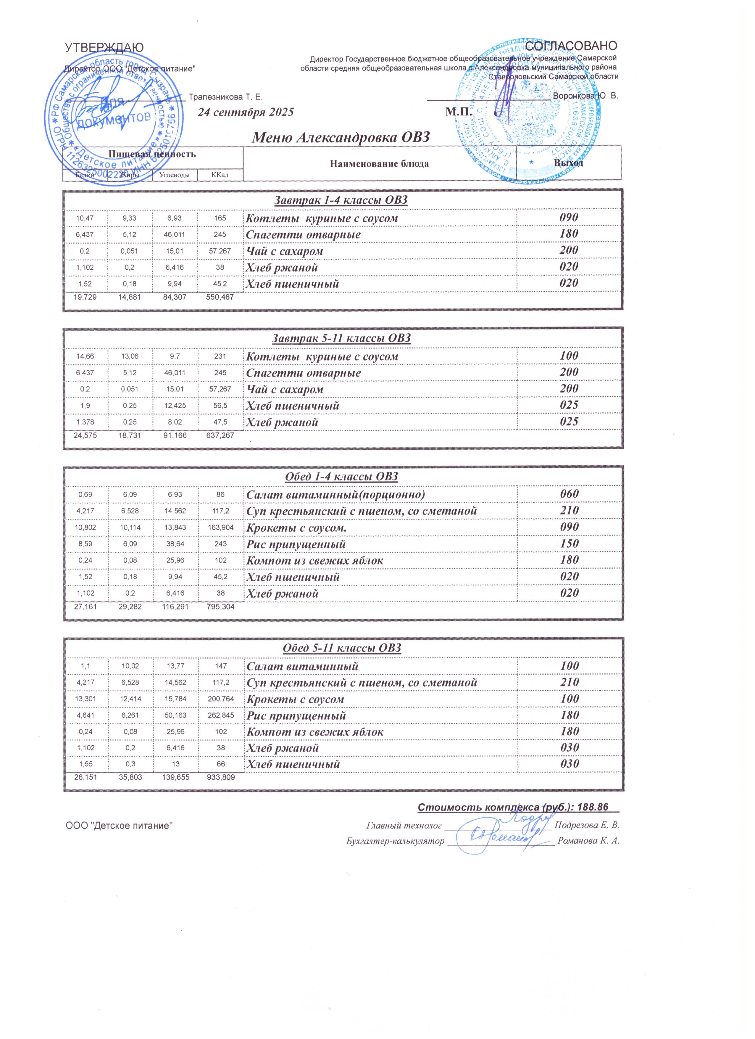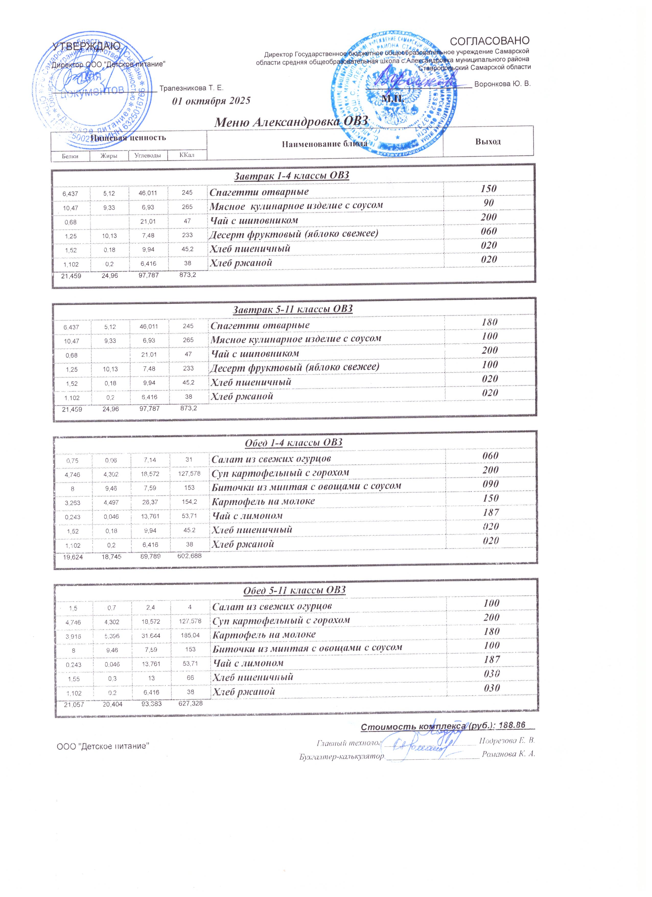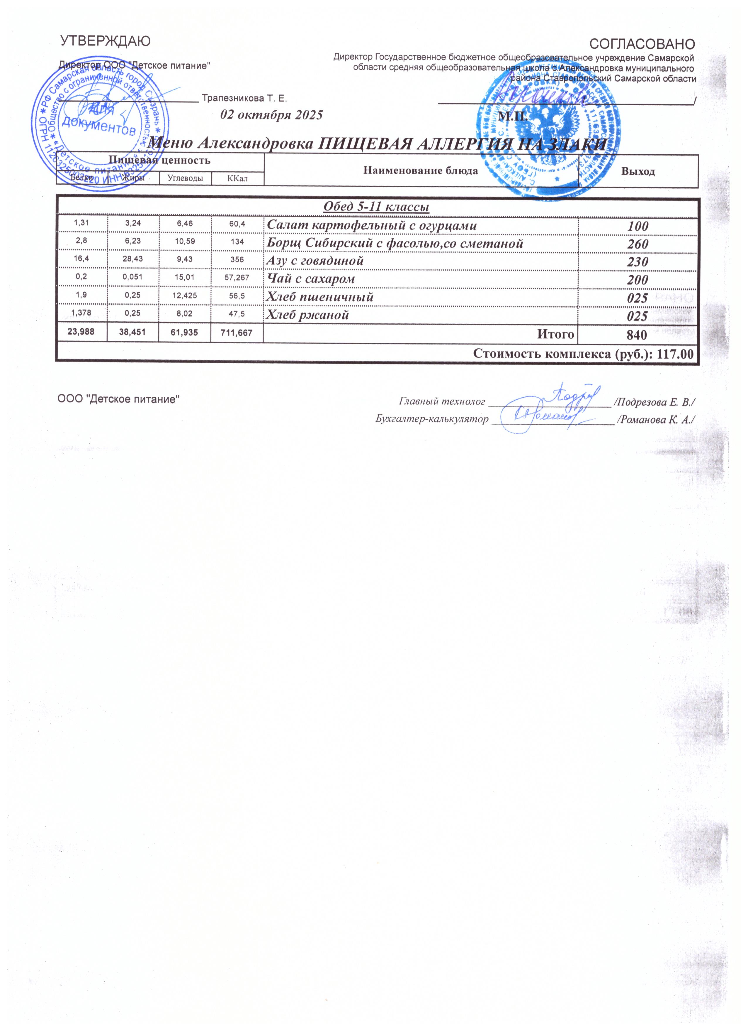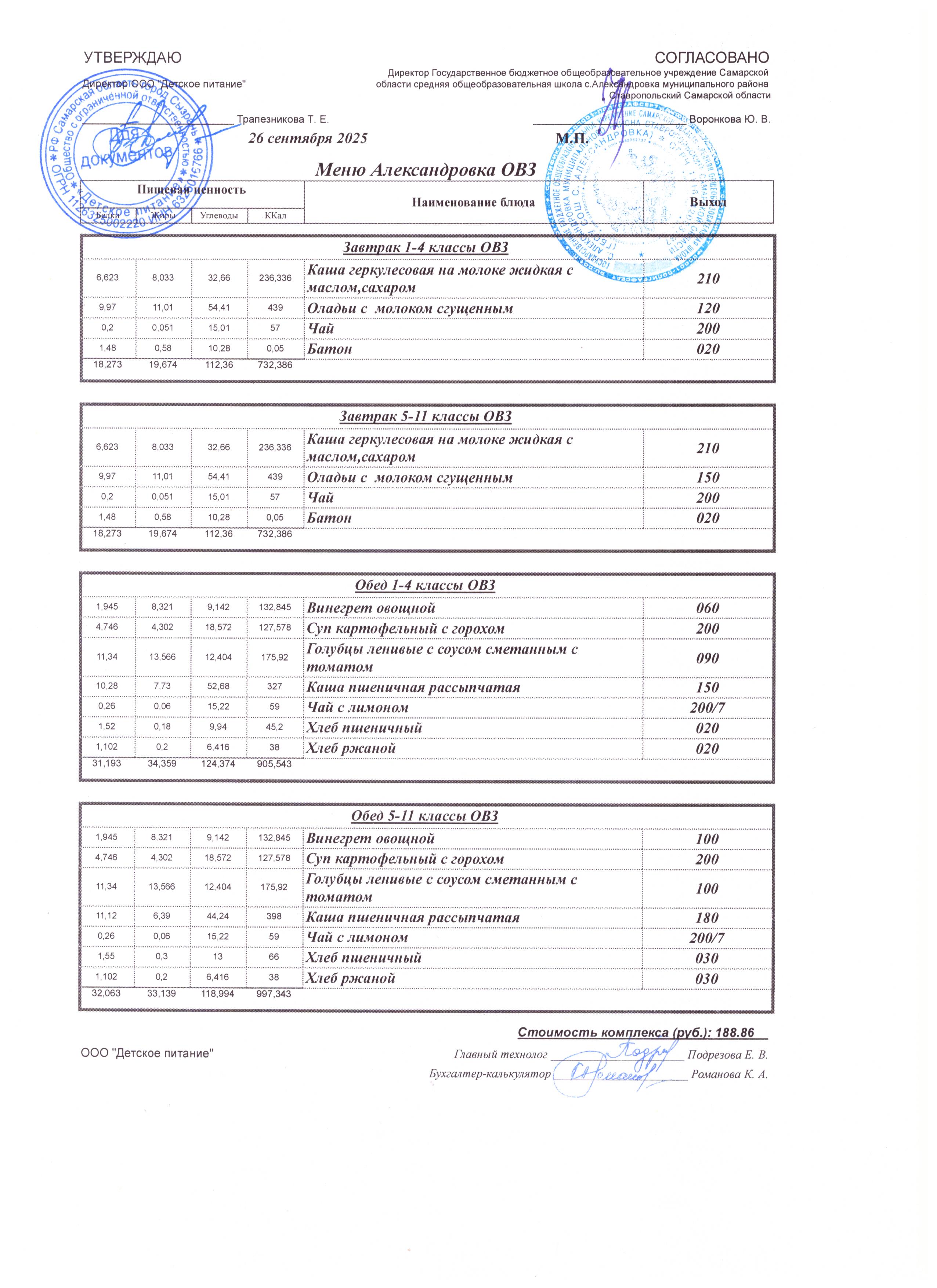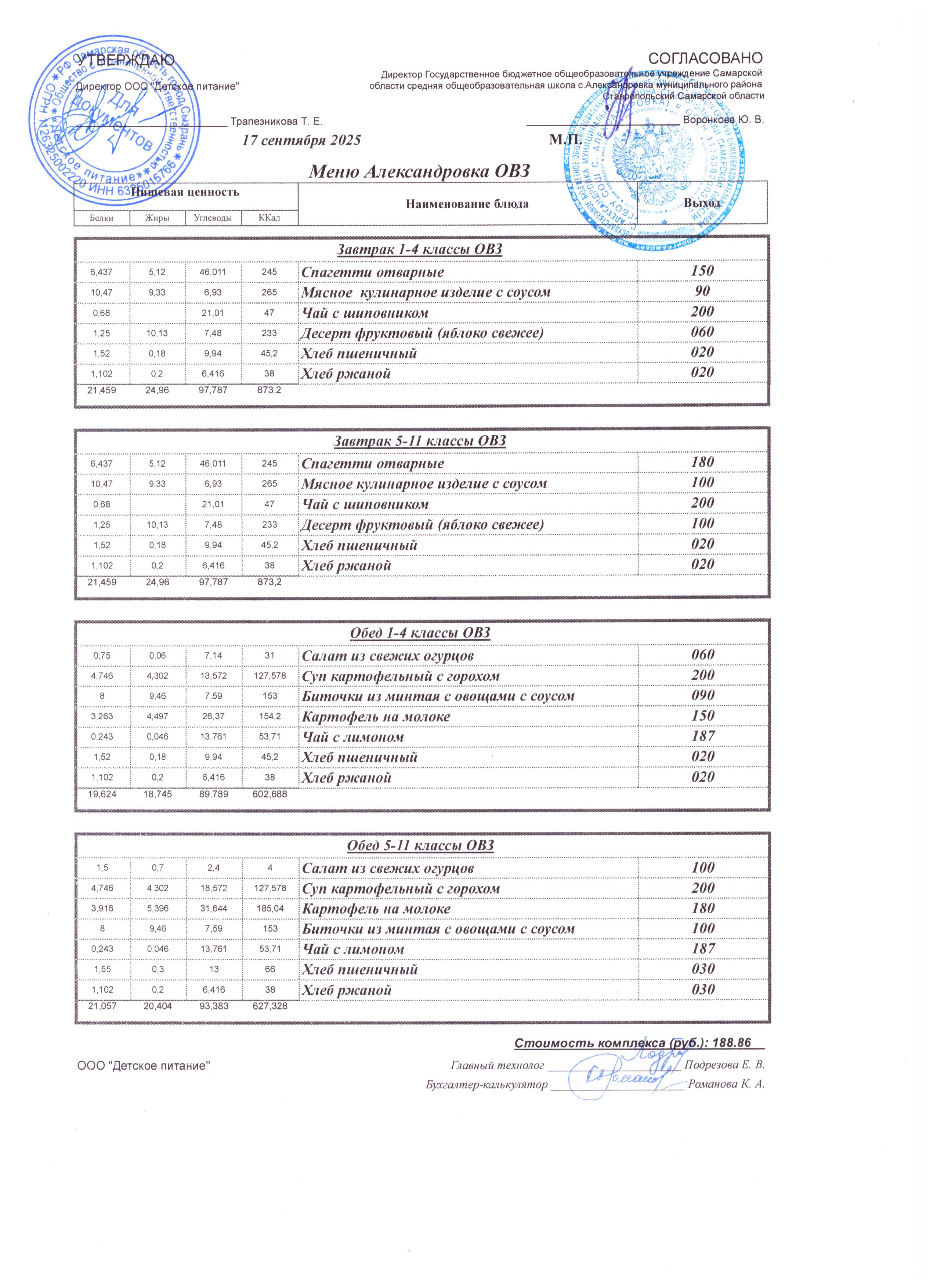2-х недельное цикличное меню согласованное с территориальным управлением Роспотребнадзора и родительской общественностью