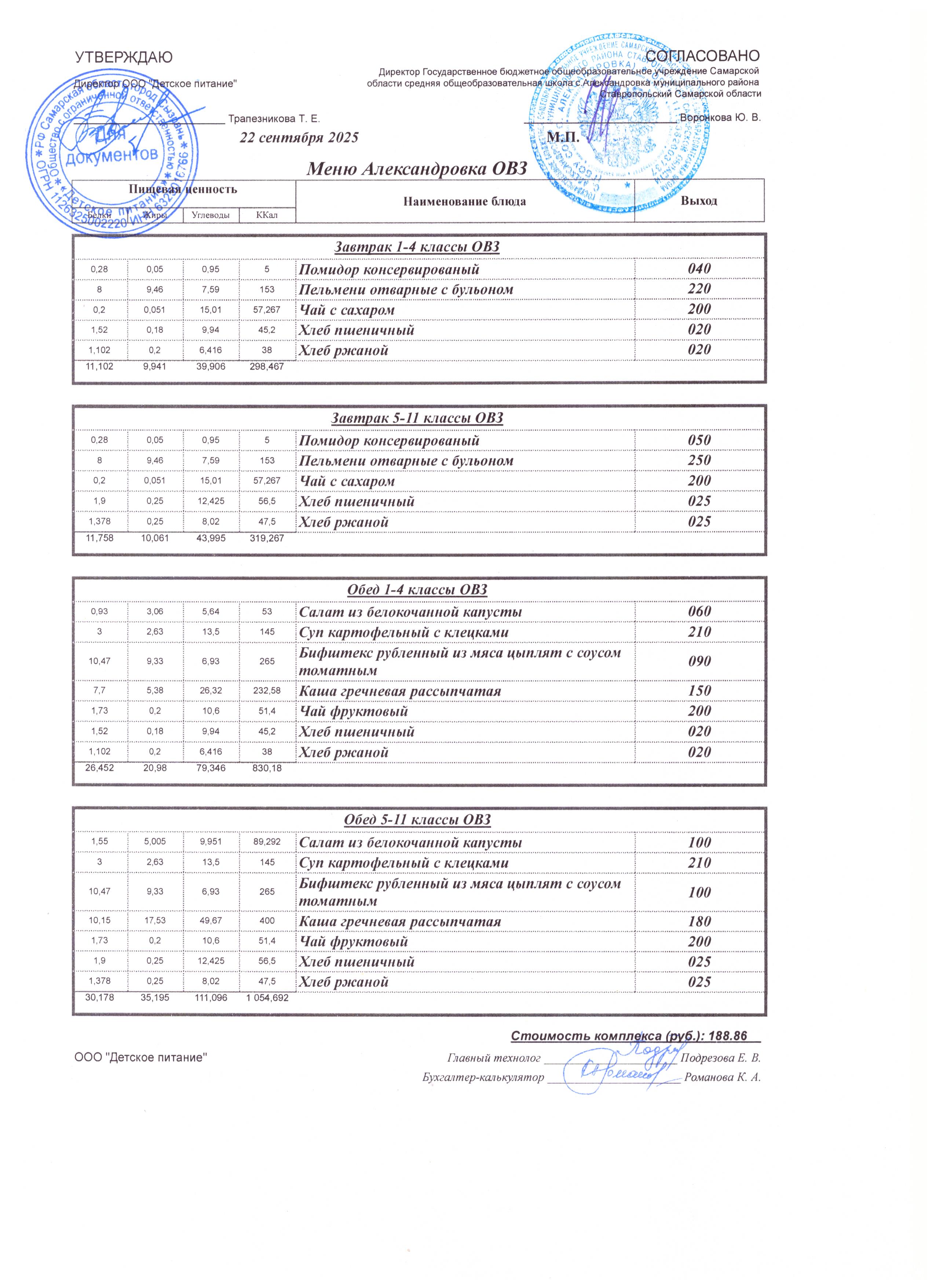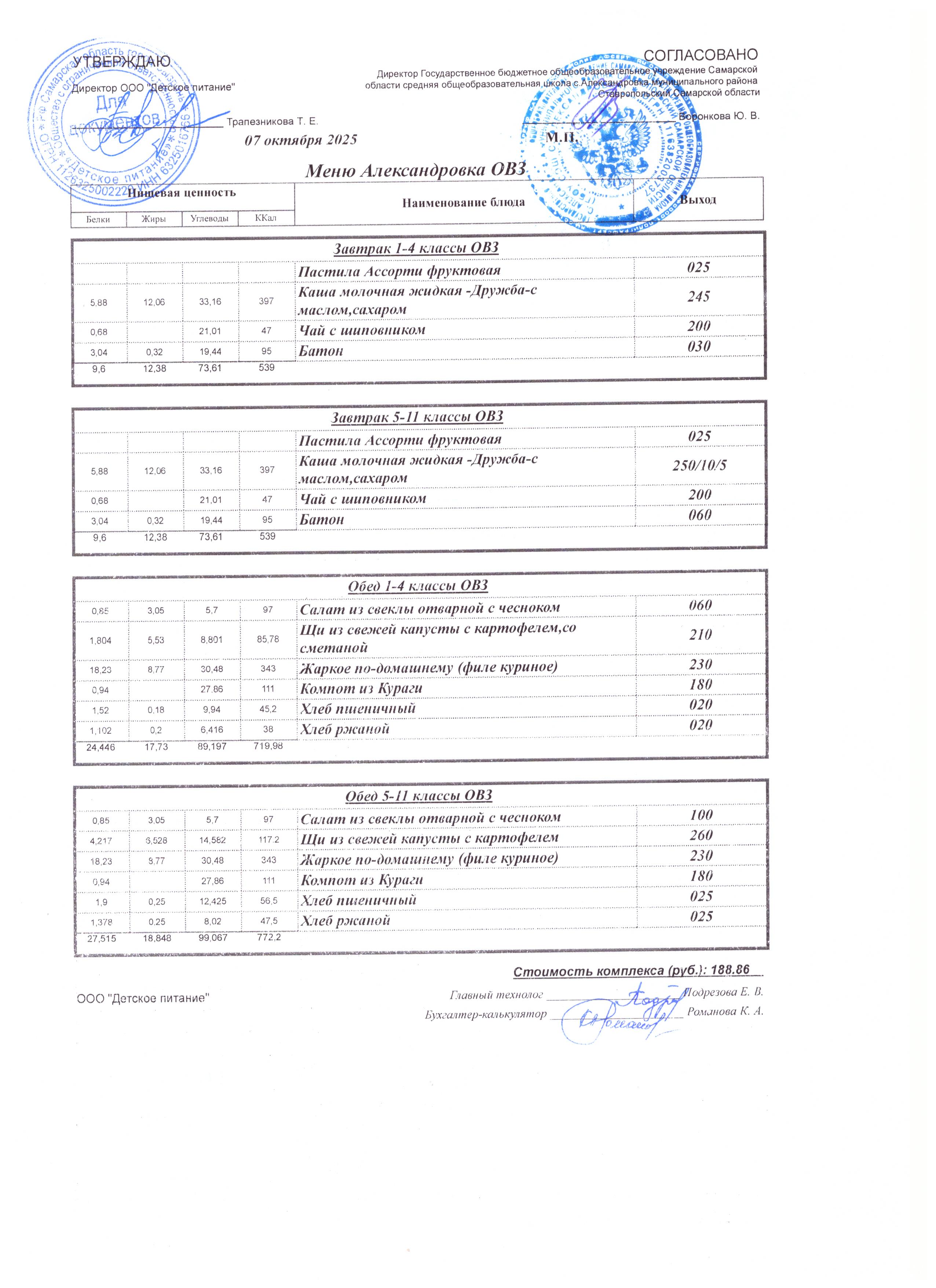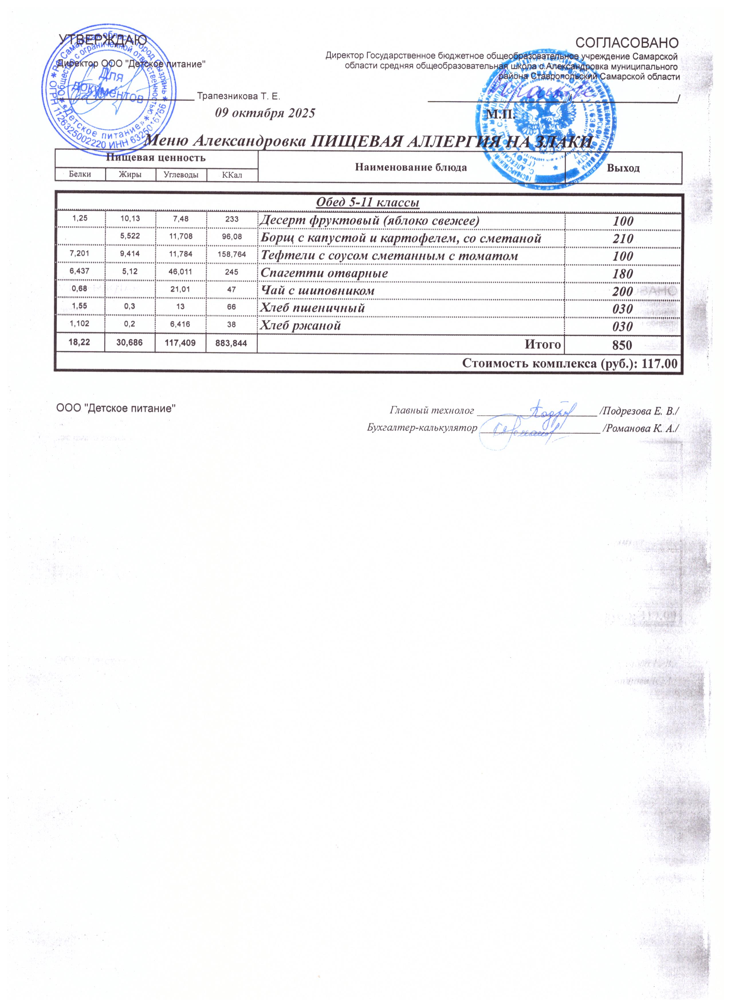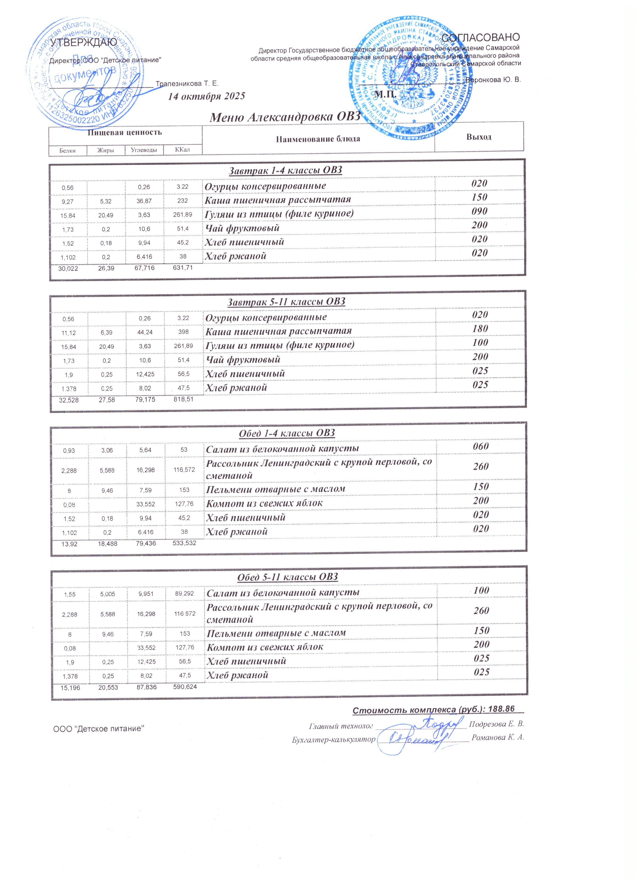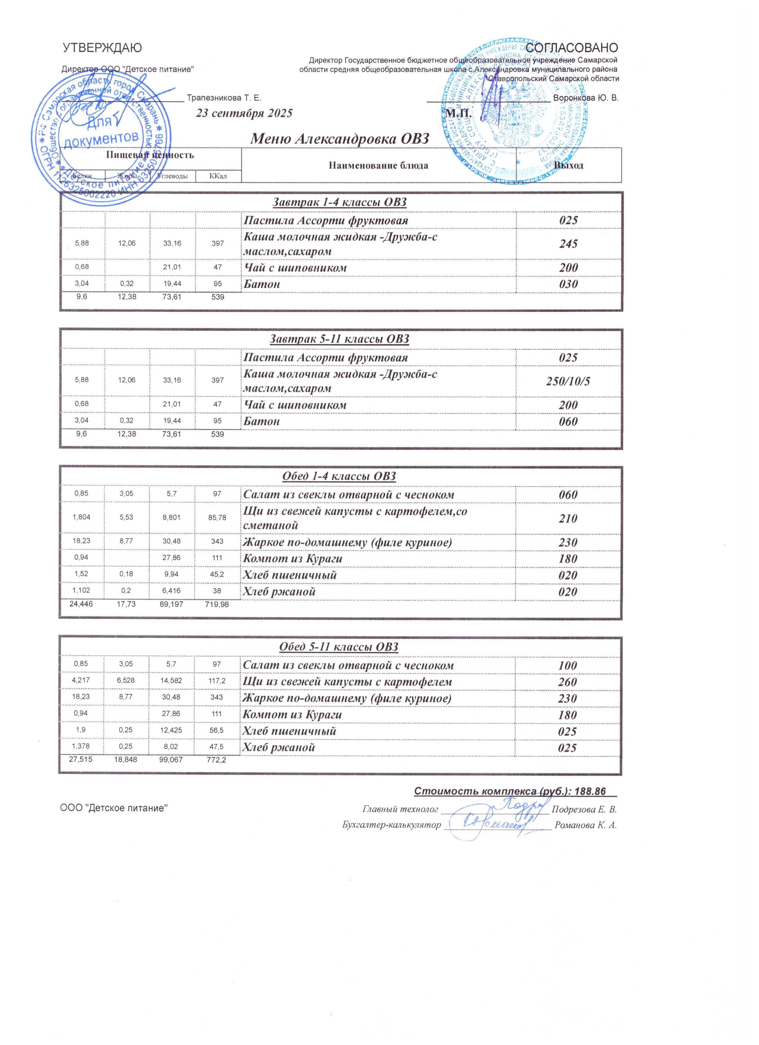 2-х недельное цикличное меню согласованное с территориальным управлением Роспотребнадзора и родительской общественностью