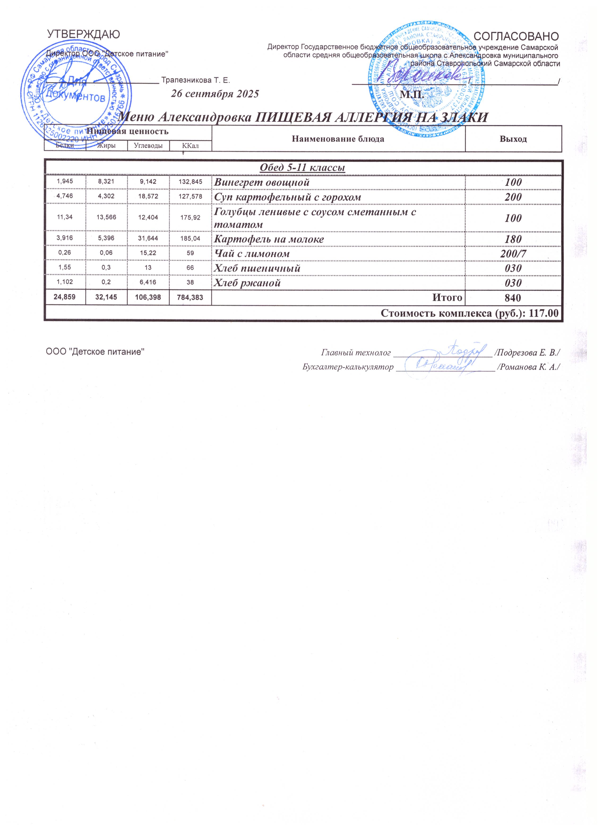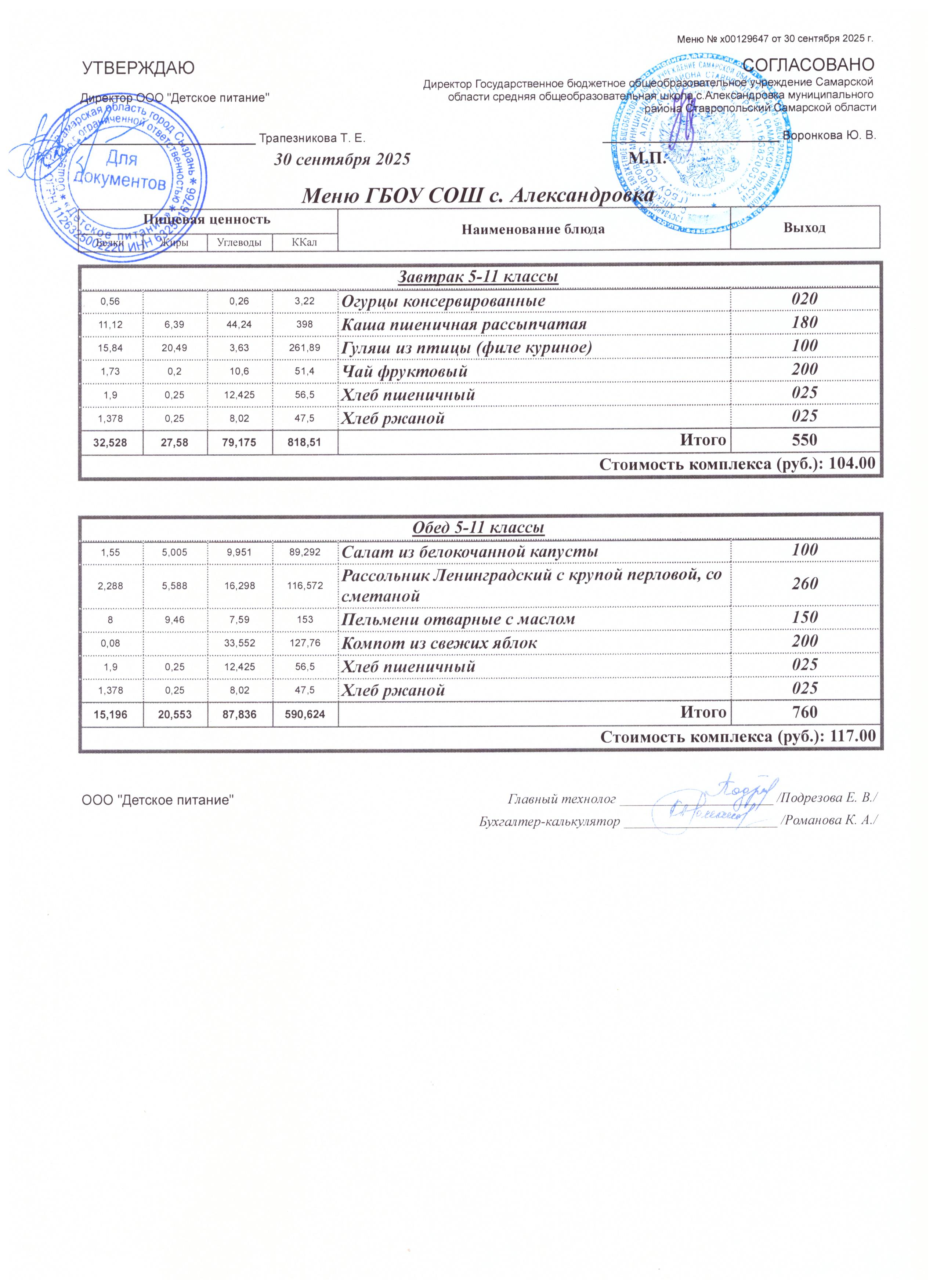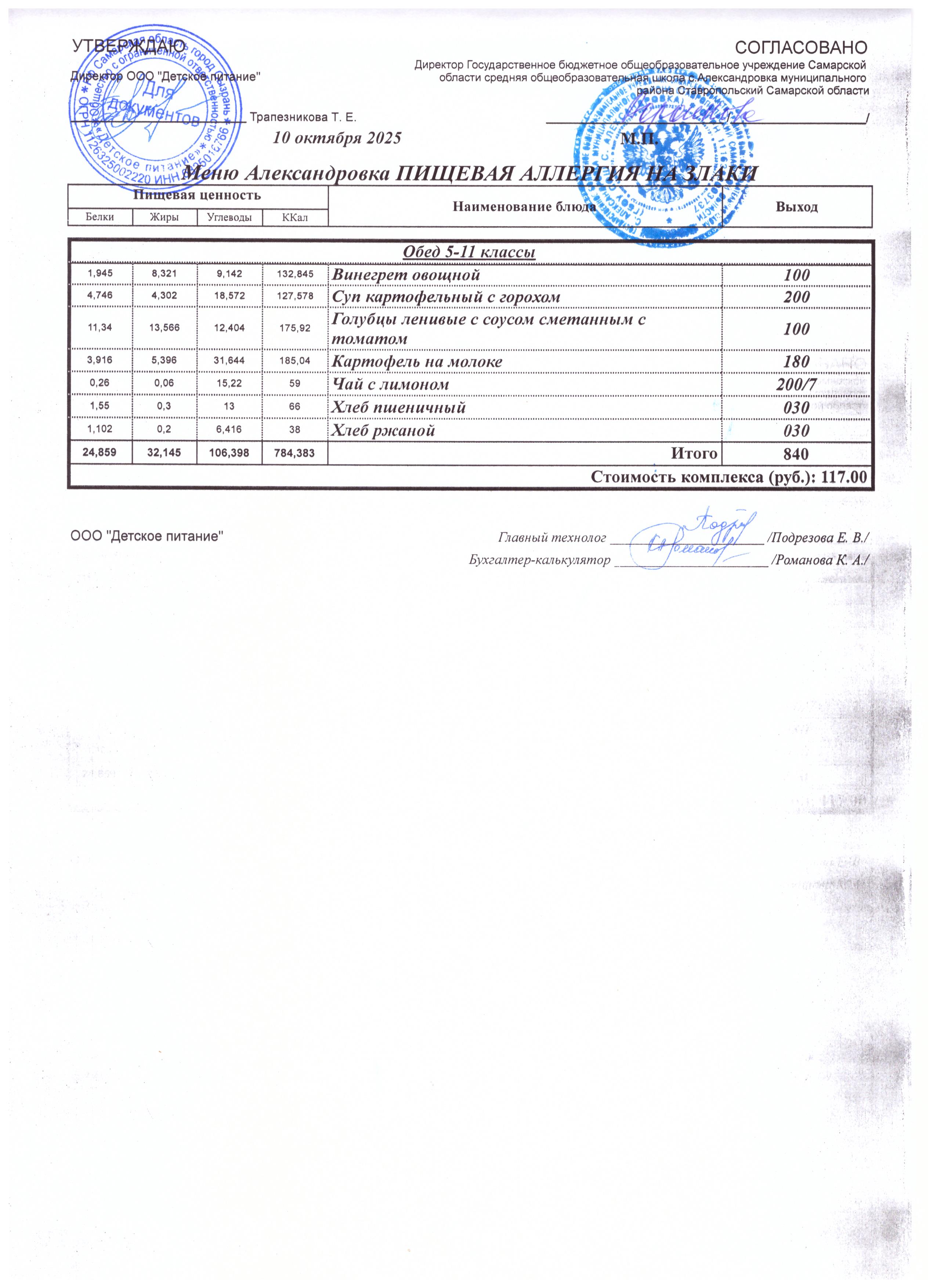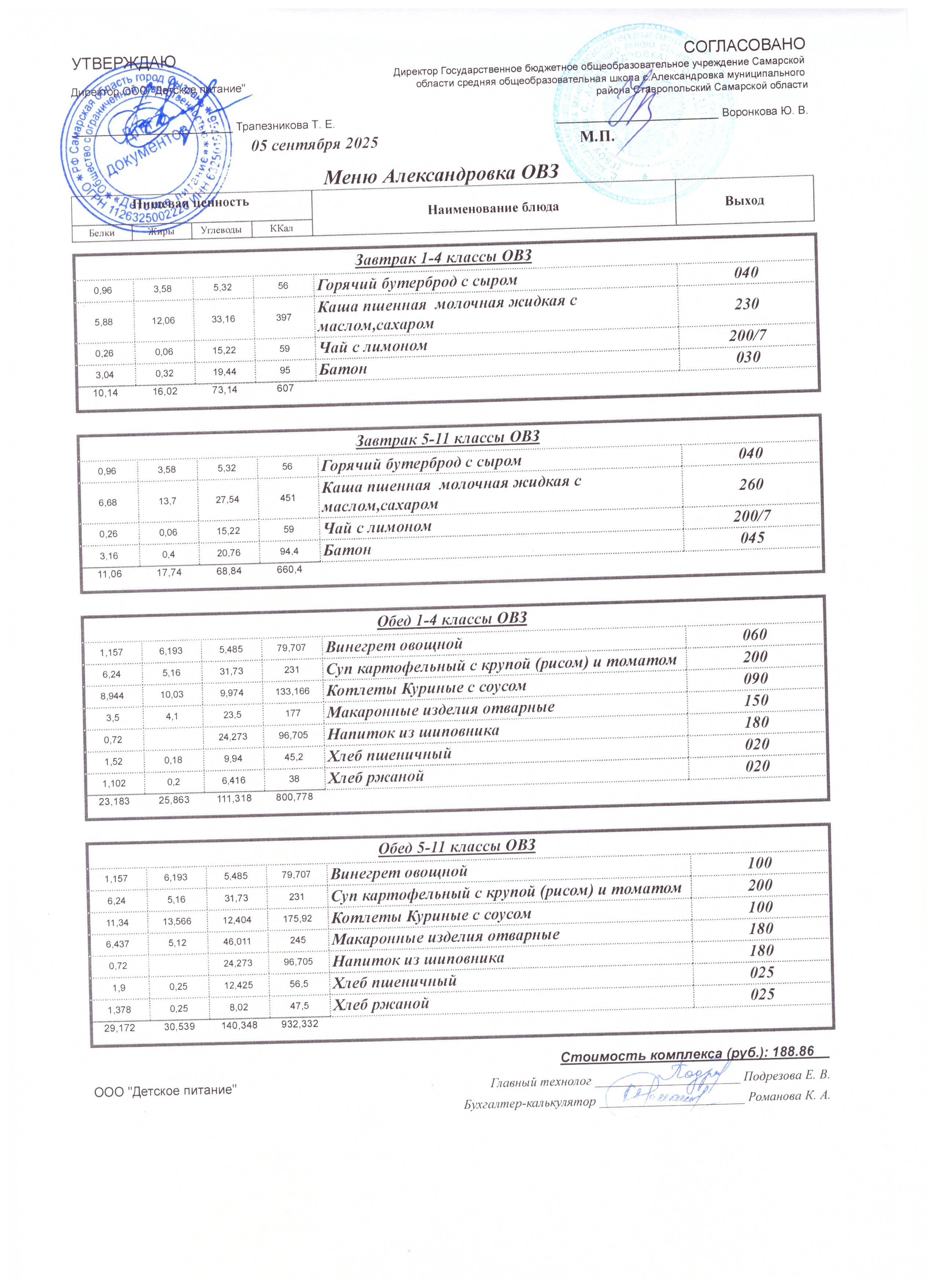 Ответственный за питание в ГБОУ СОШ с. Александровка Земляк Елена Павловна 8(8482)238150