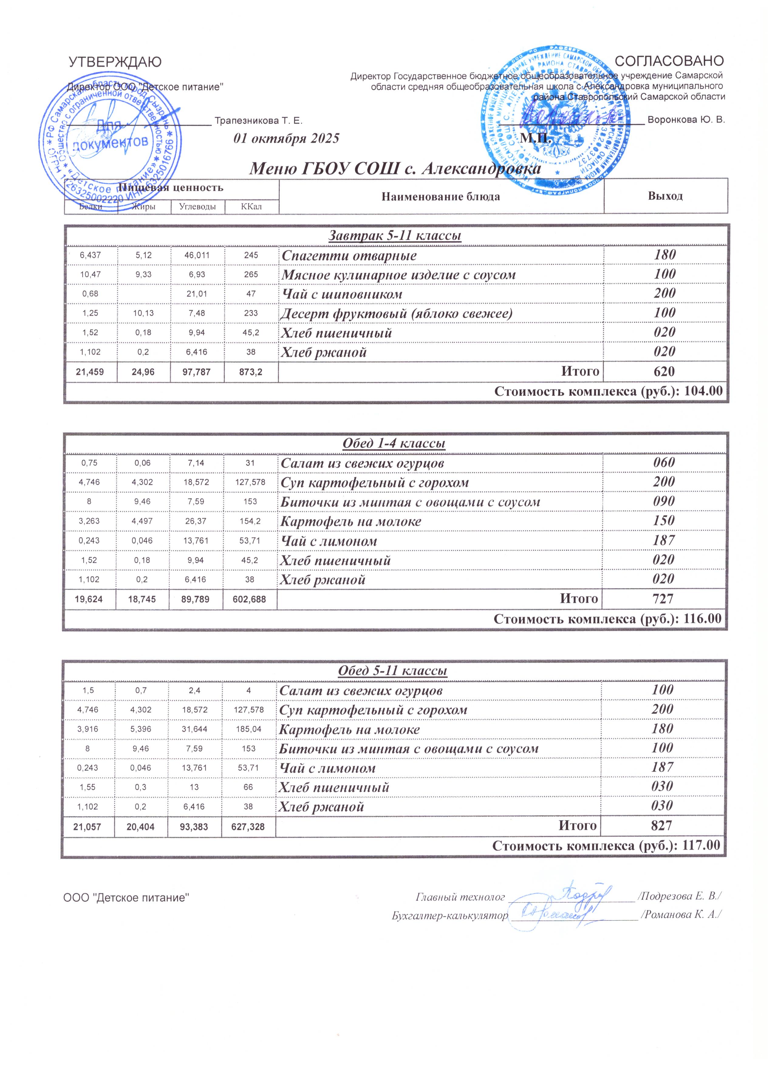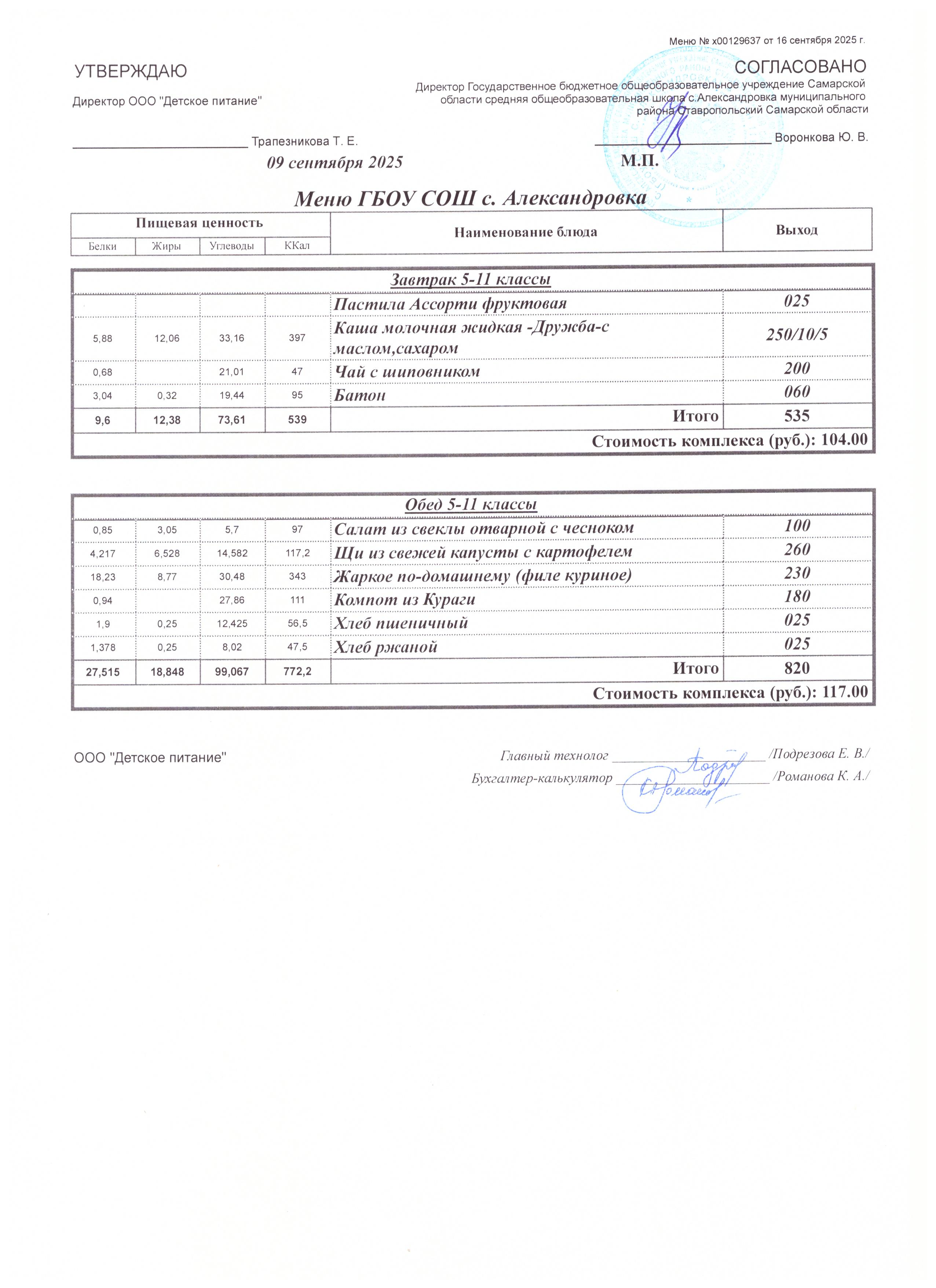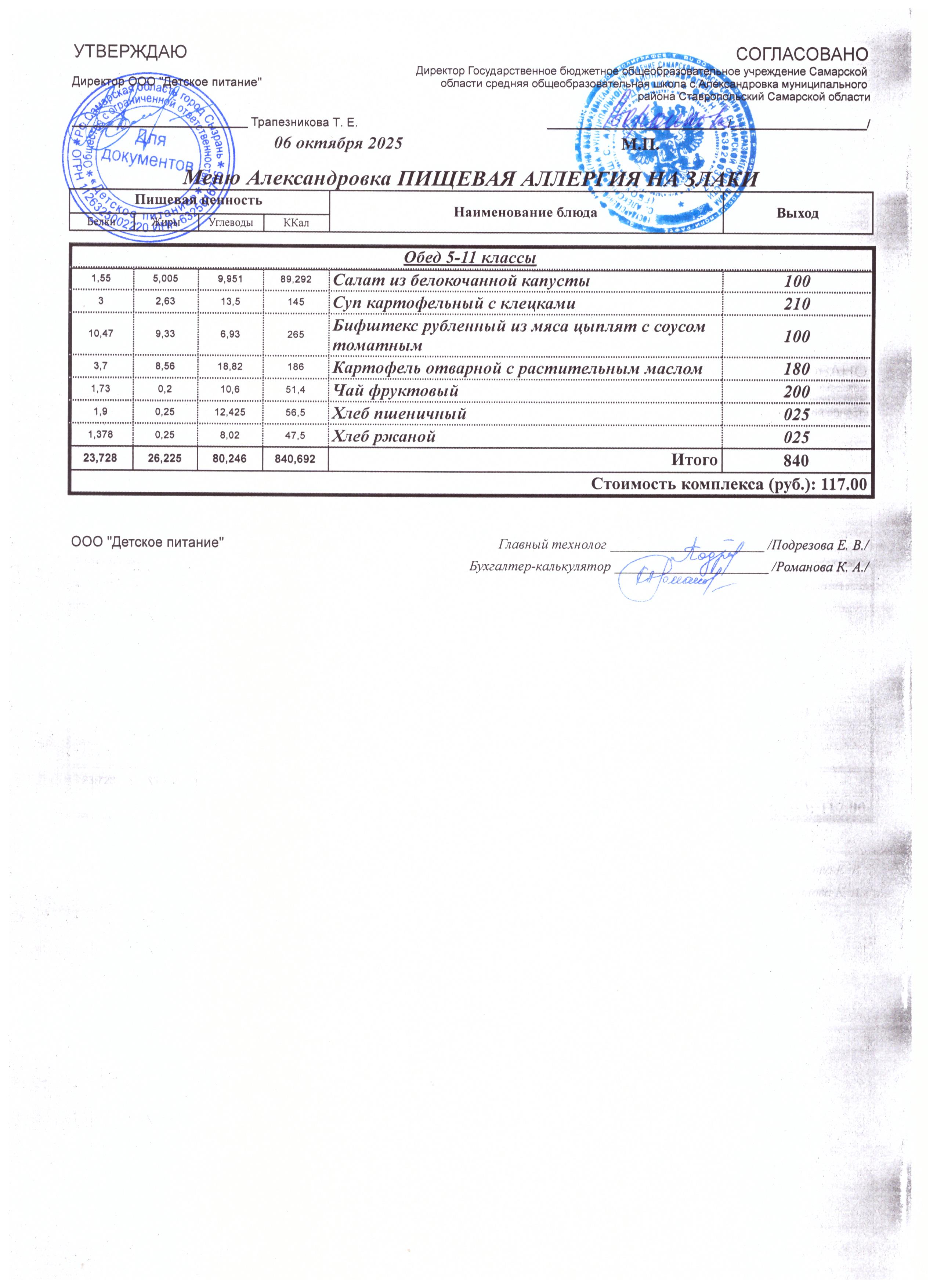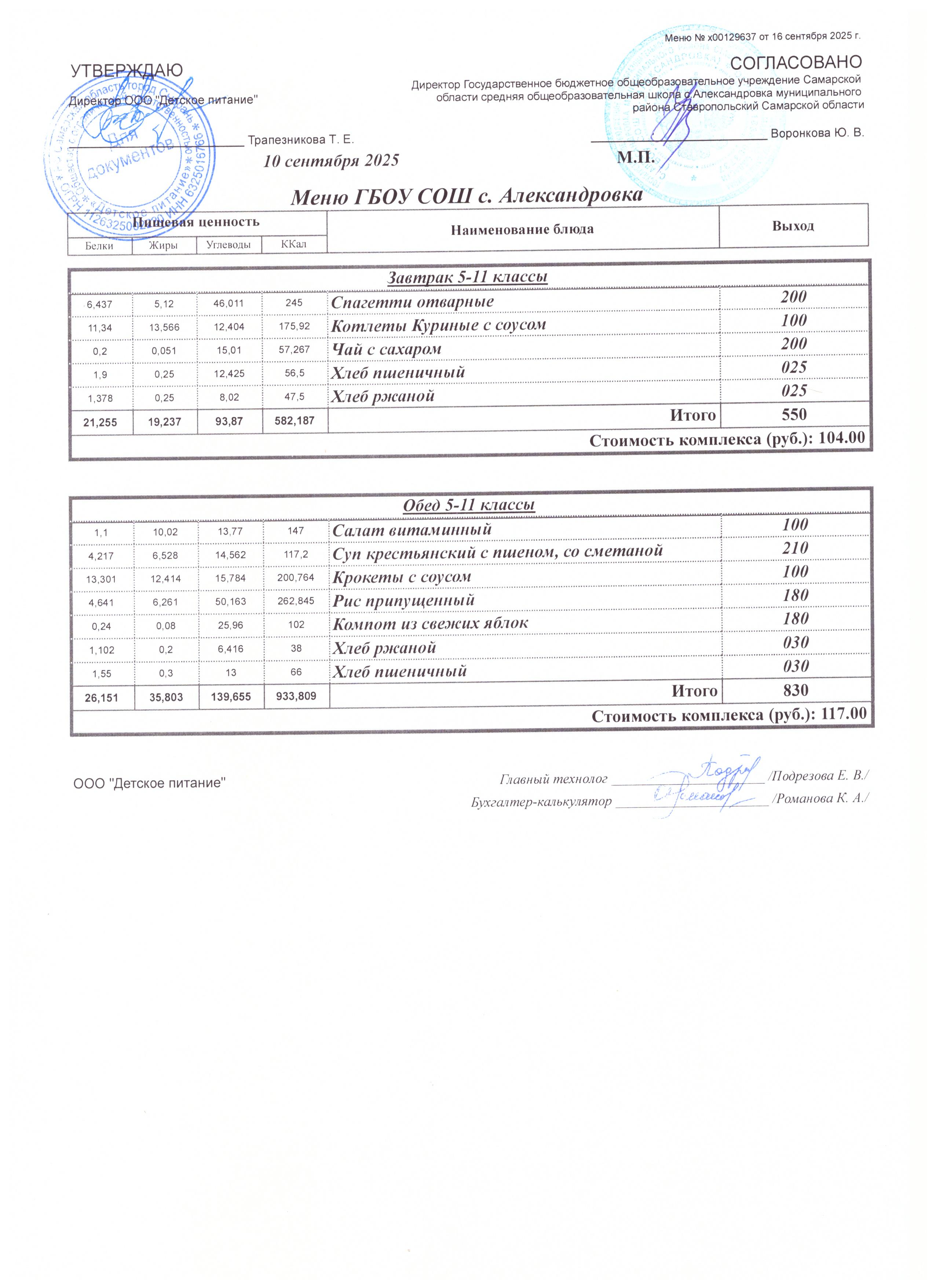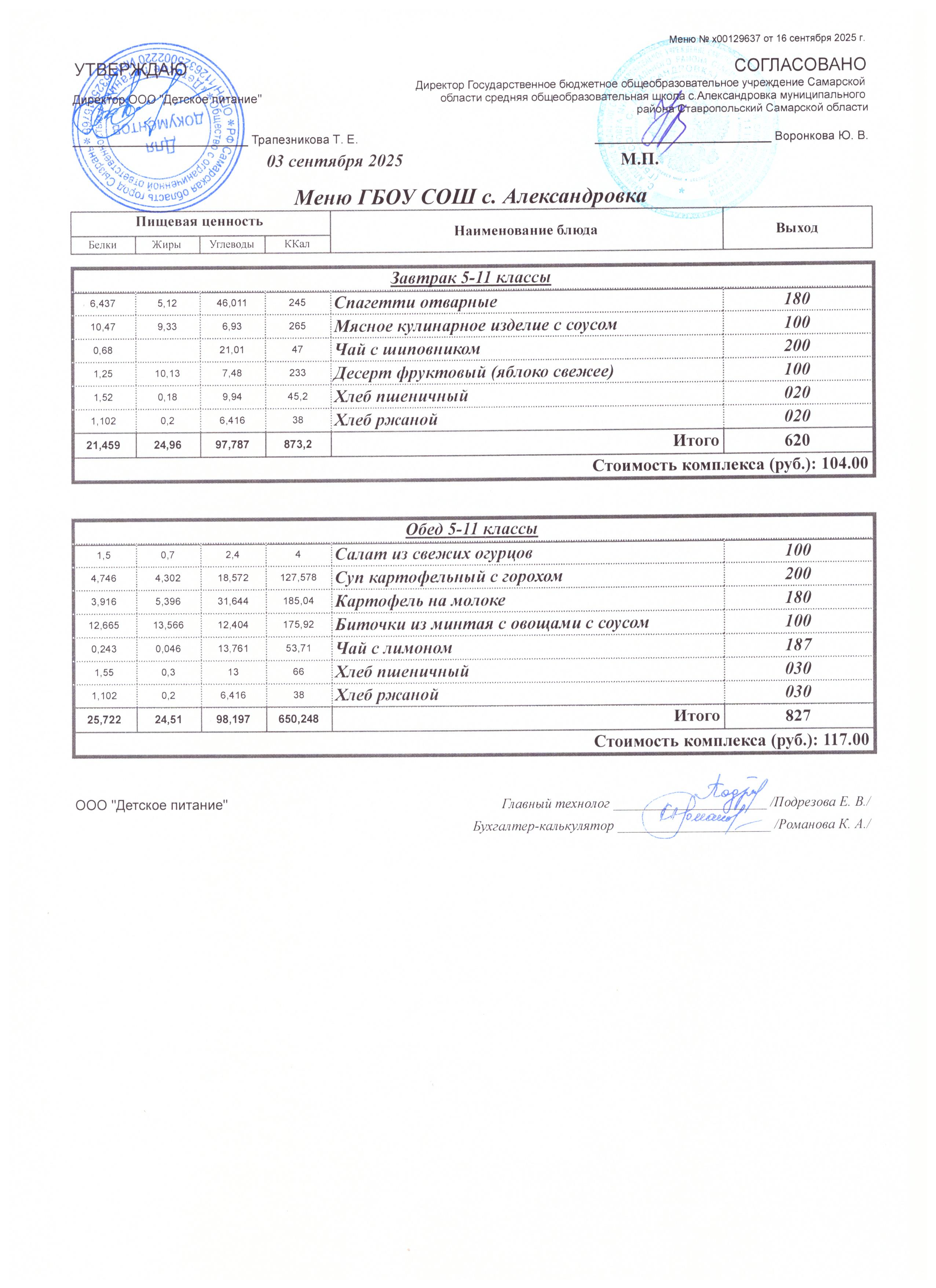 Ответственный за питание в ГБОУ СОШ с. Александровка Земляк Елена Павловна 8(8482)238150