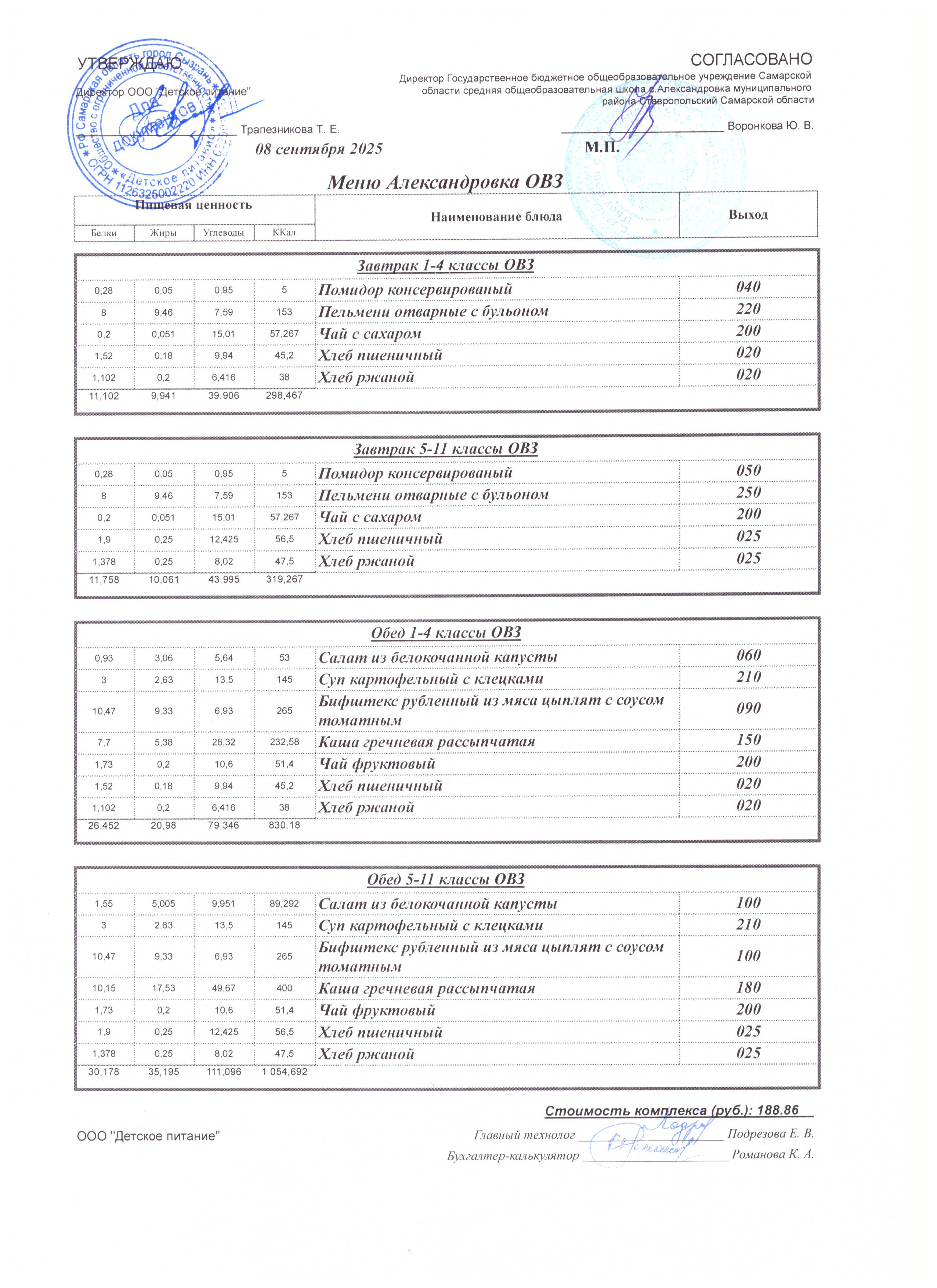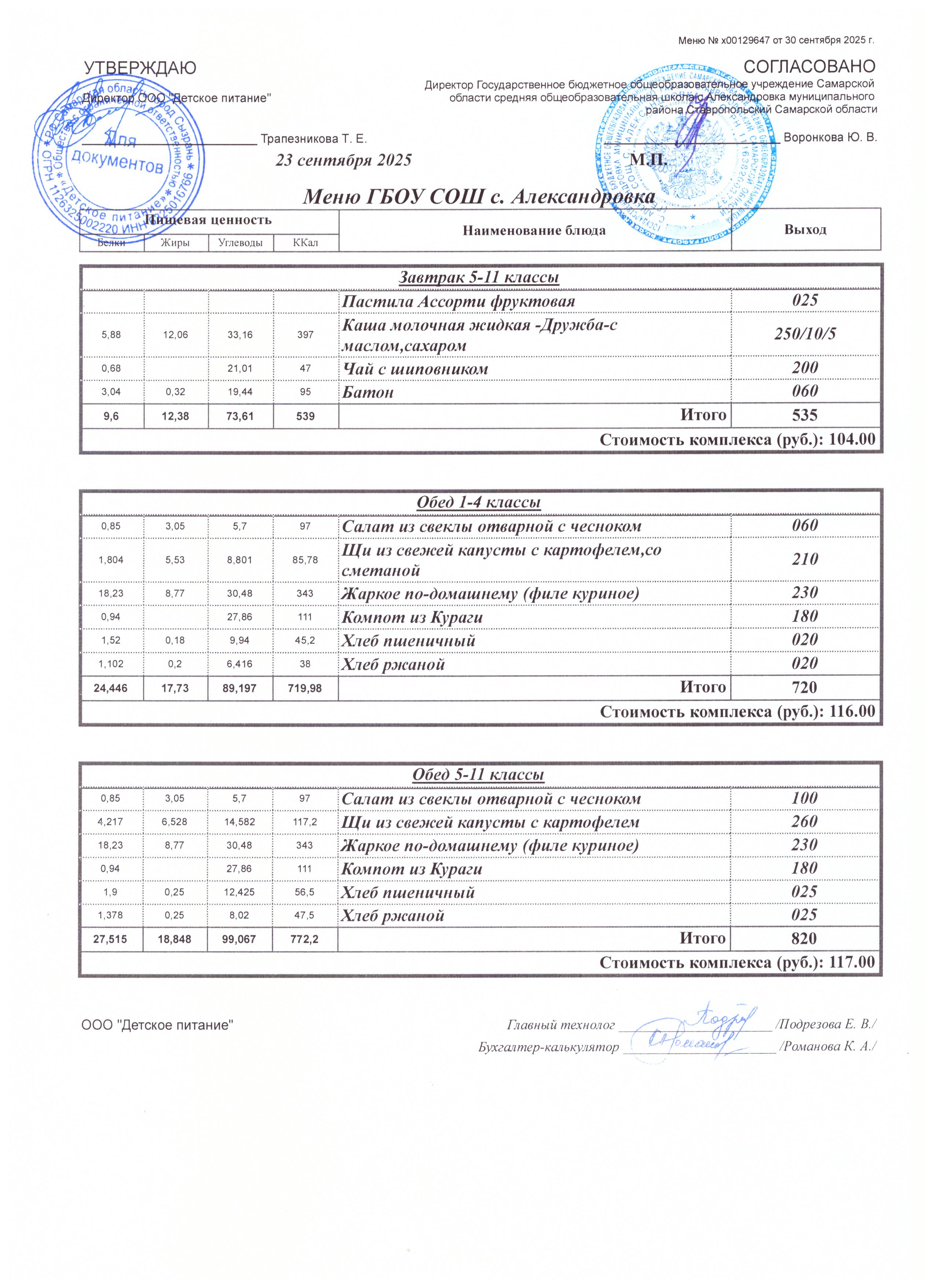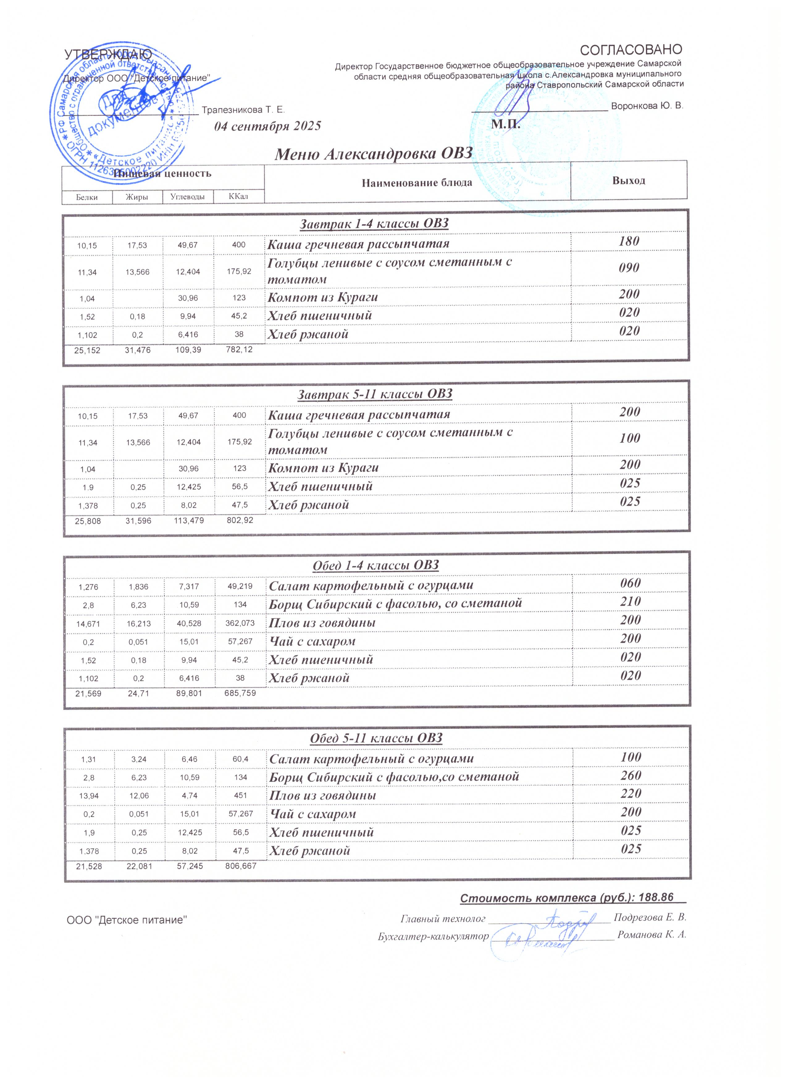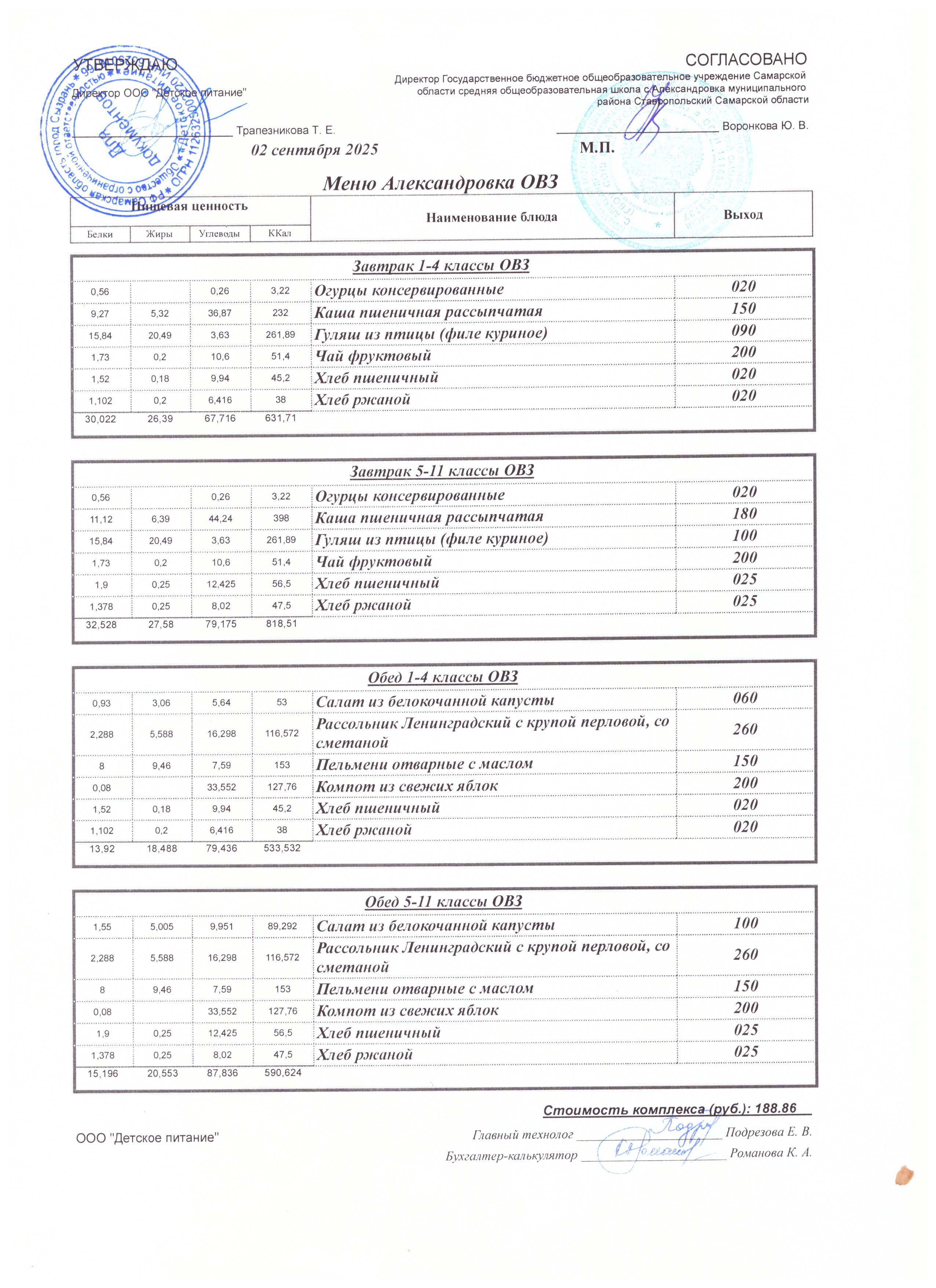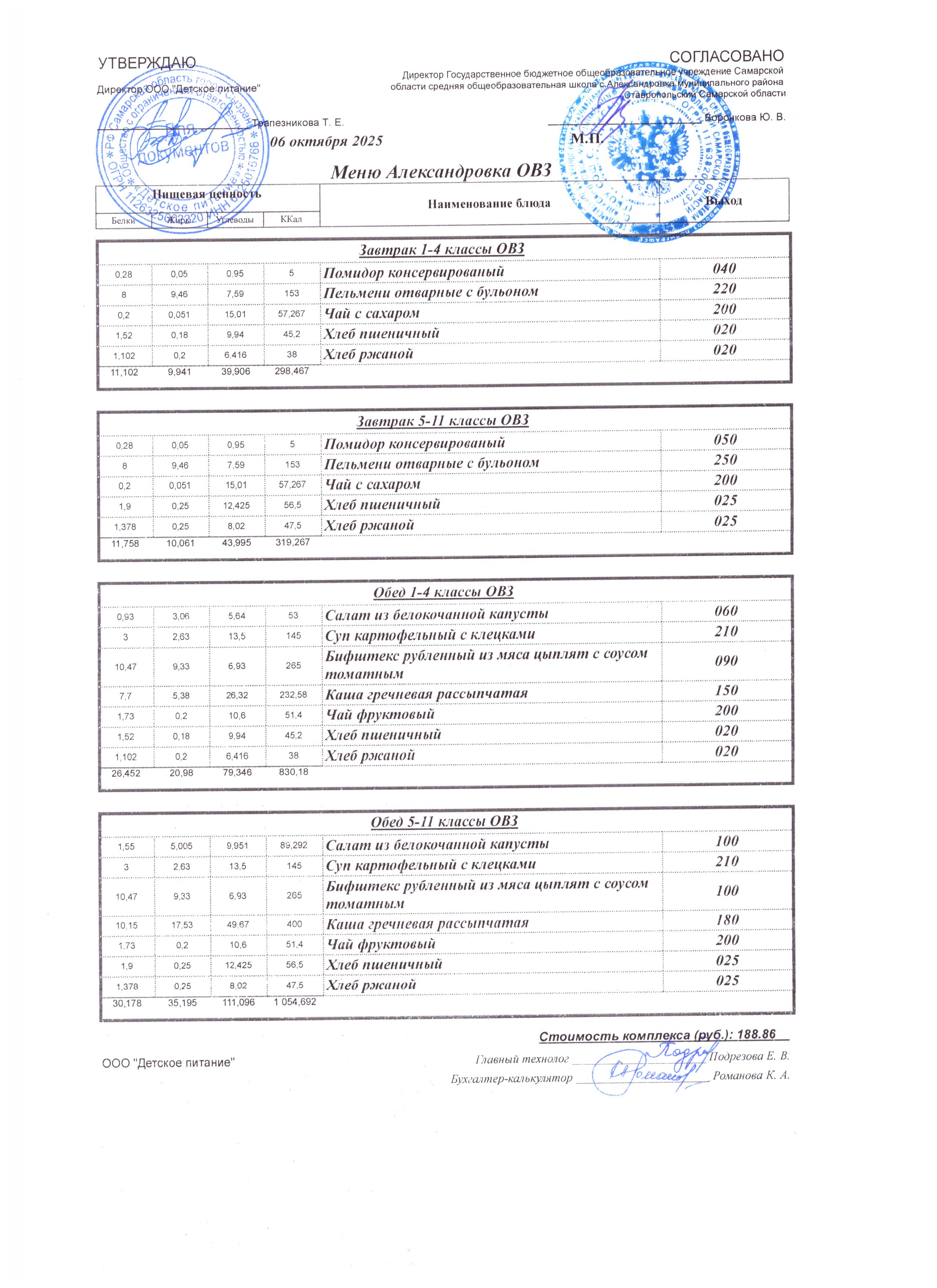 Ответственный за питание в ГБОУ СОШ с. Александровка Земляк Елена Павловна 8(8482)238150