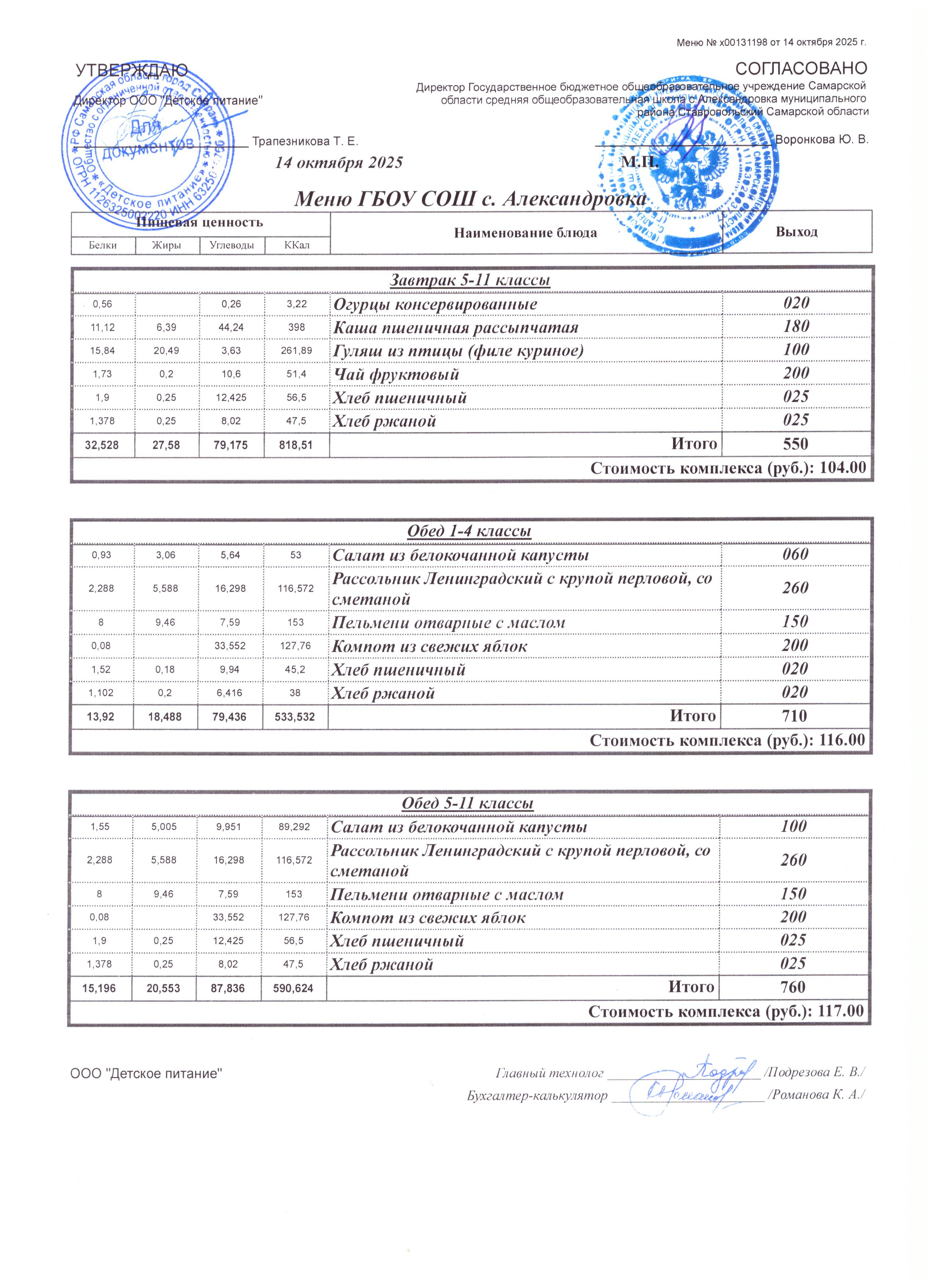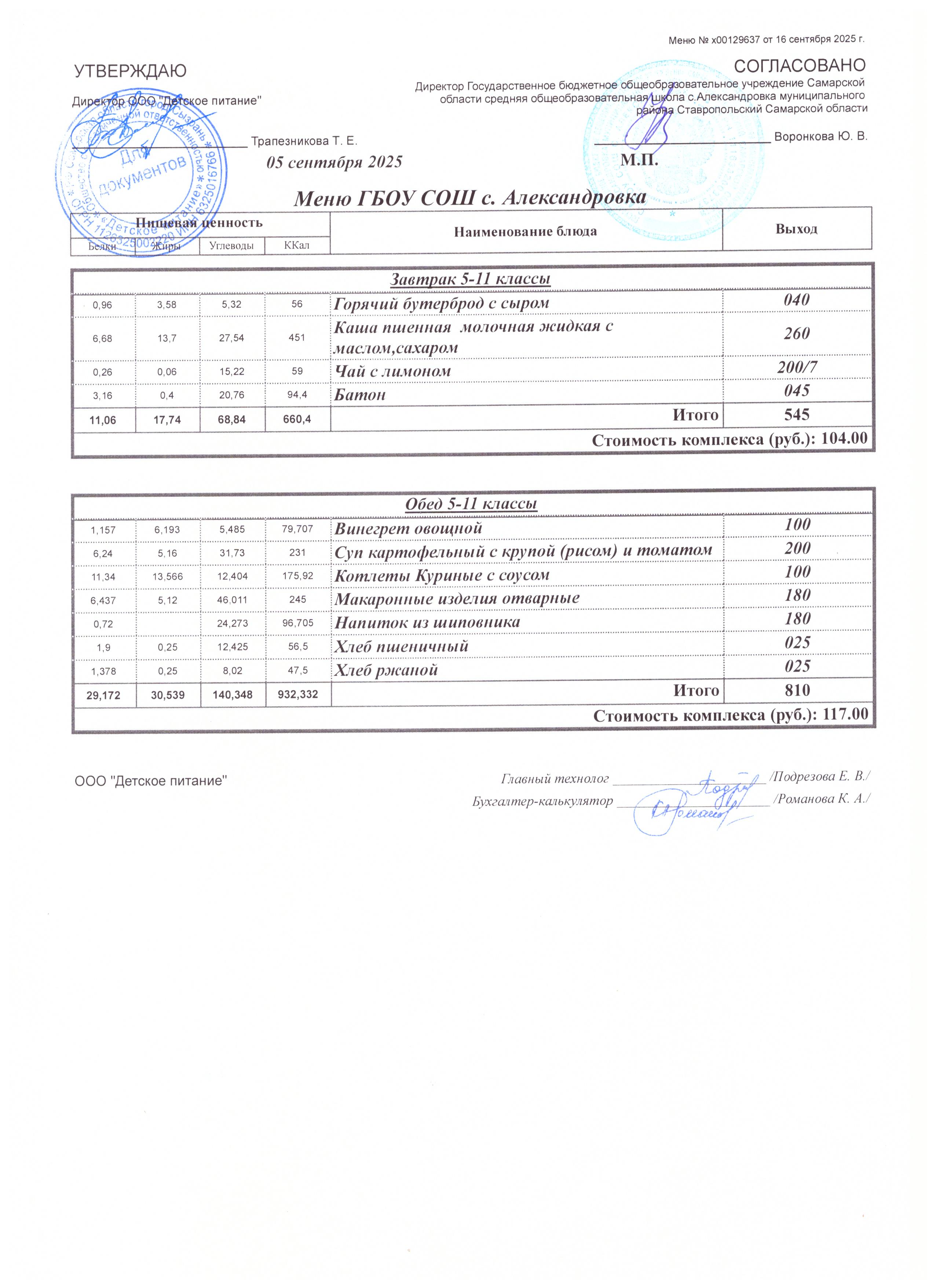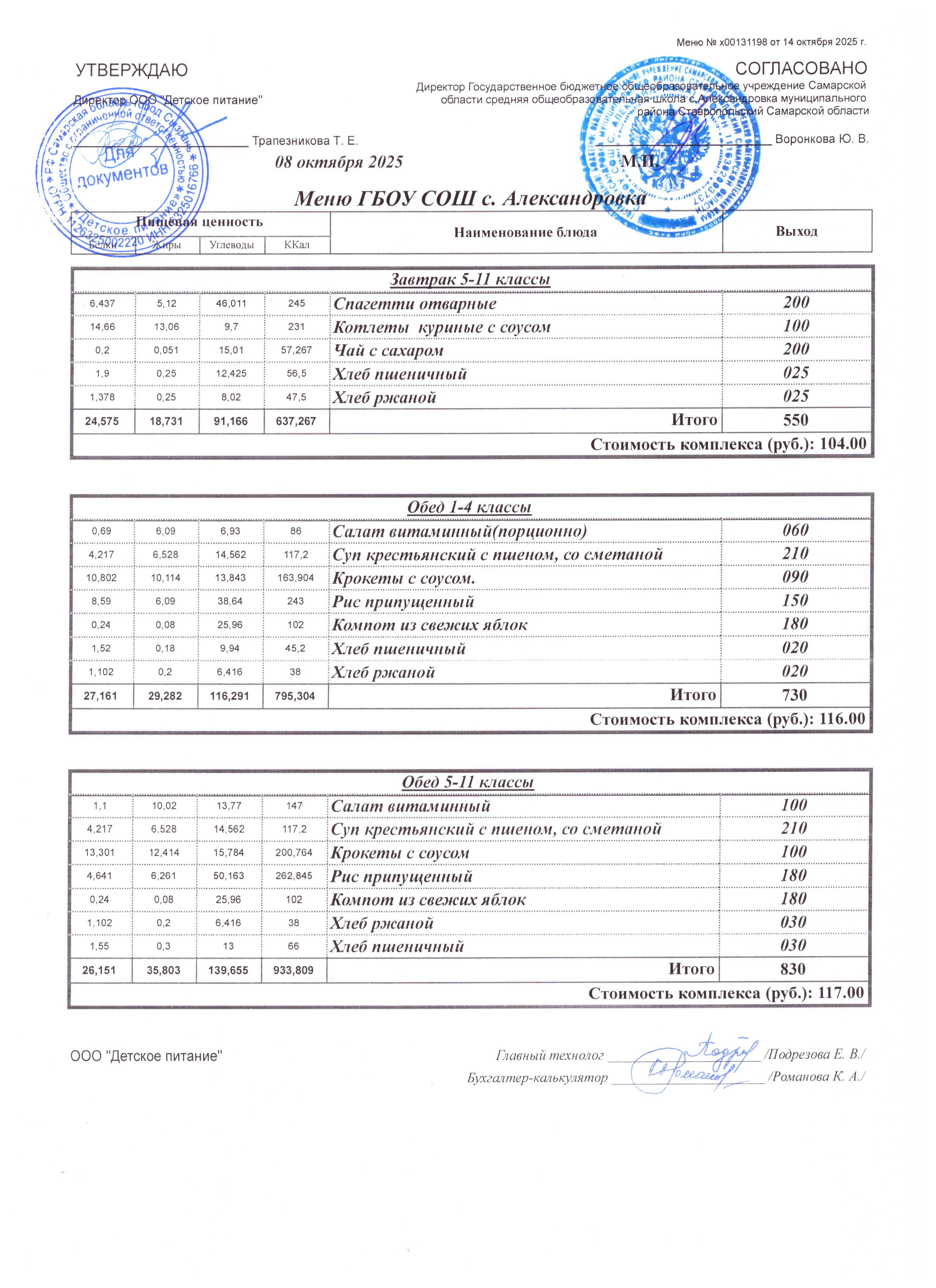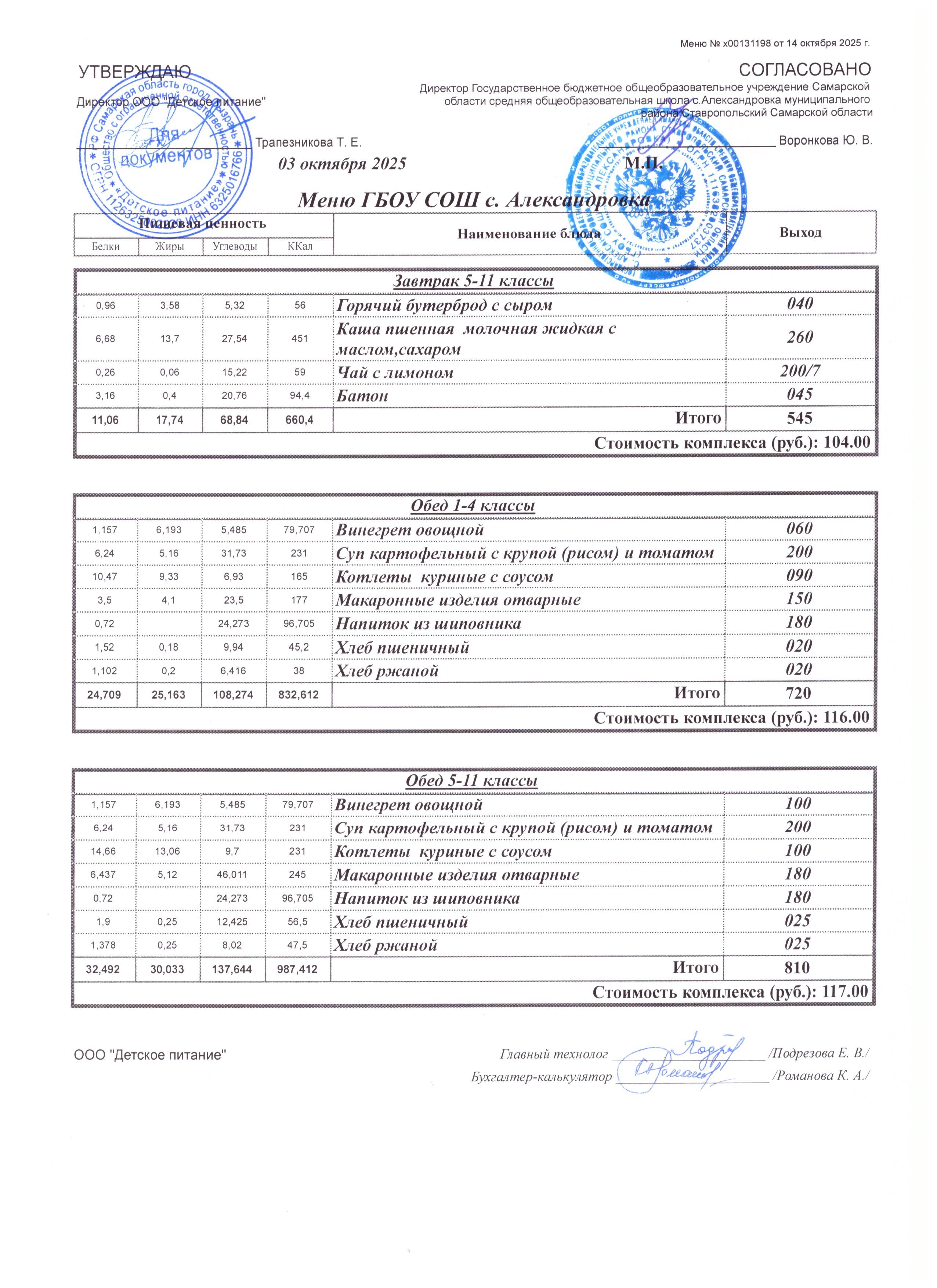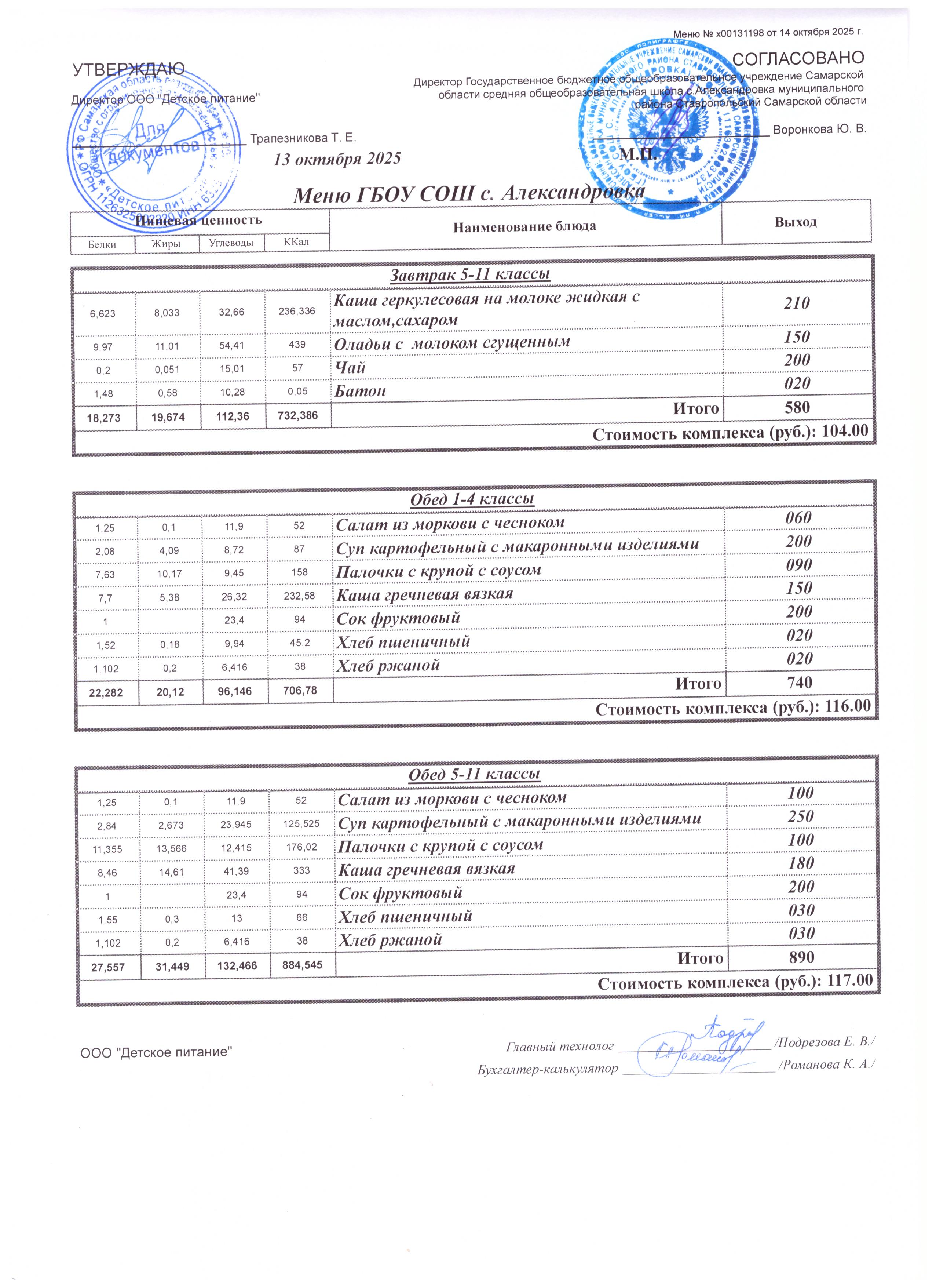 2-х недельное цикличное меню согласованное с территориальным управлением Роспотребнадзора и родительской общественностью