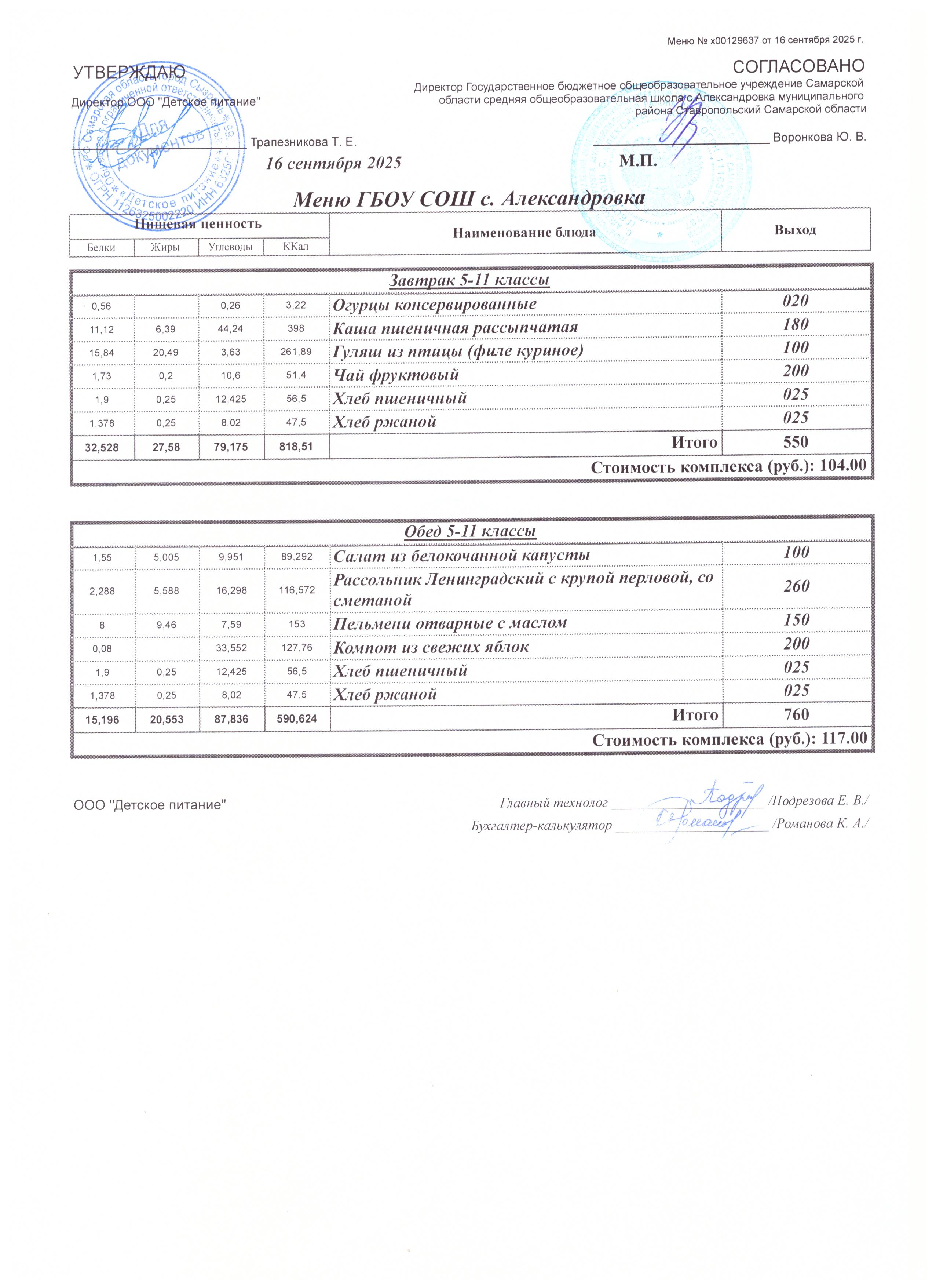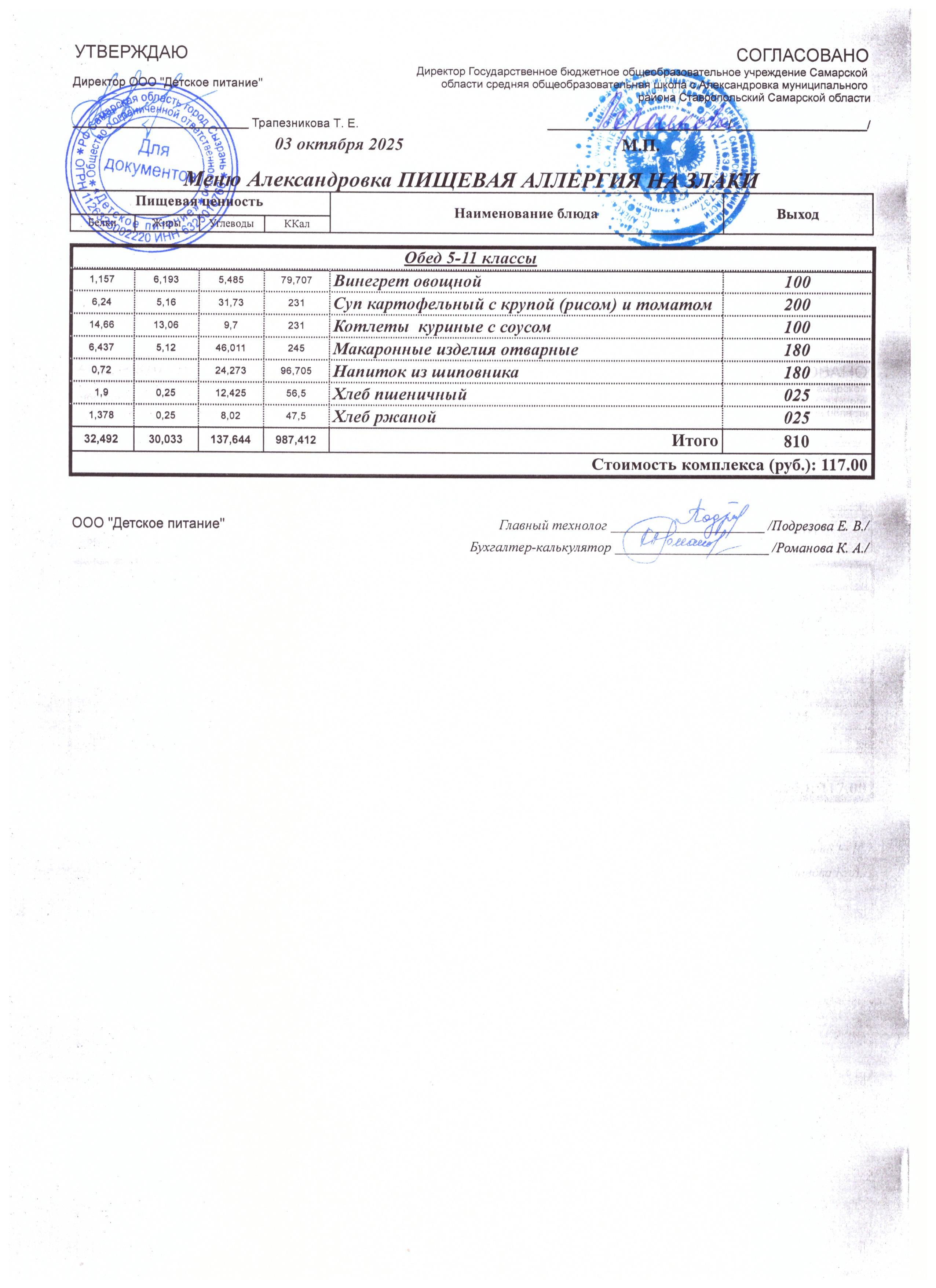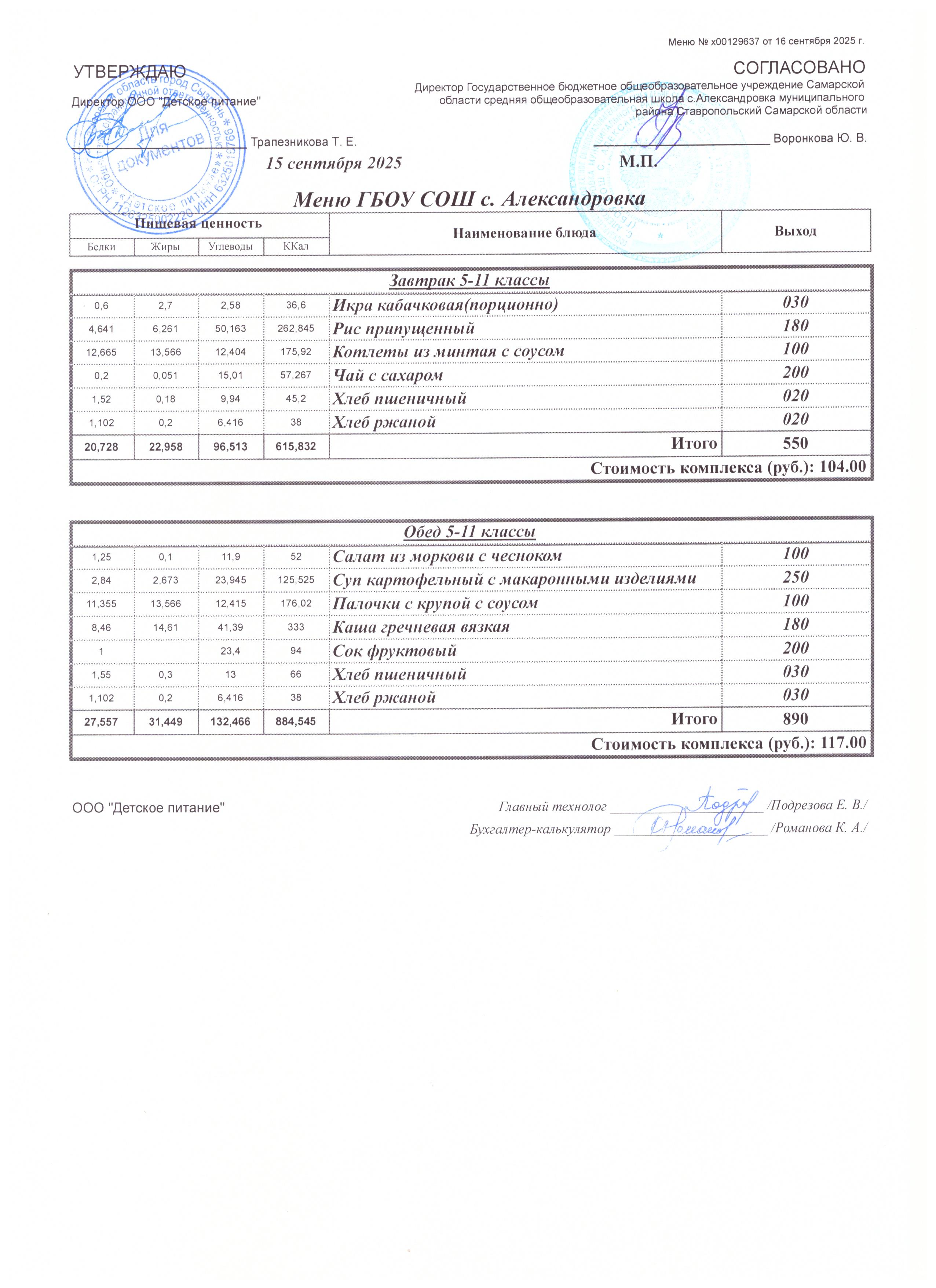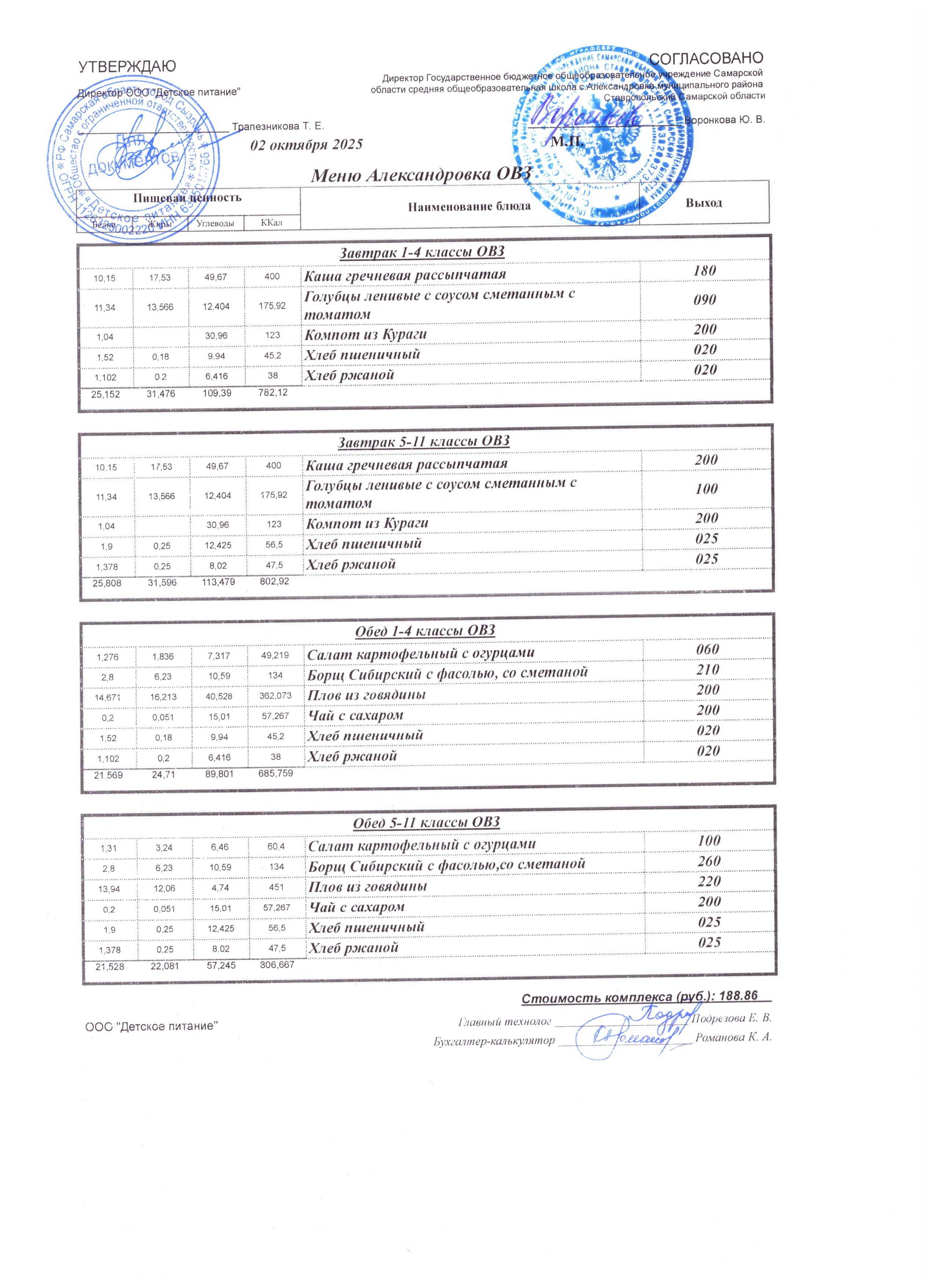 2-х недельное цикличное меню согласованное с территориальным управлением Роспотребнадзора и родительской общественностью
