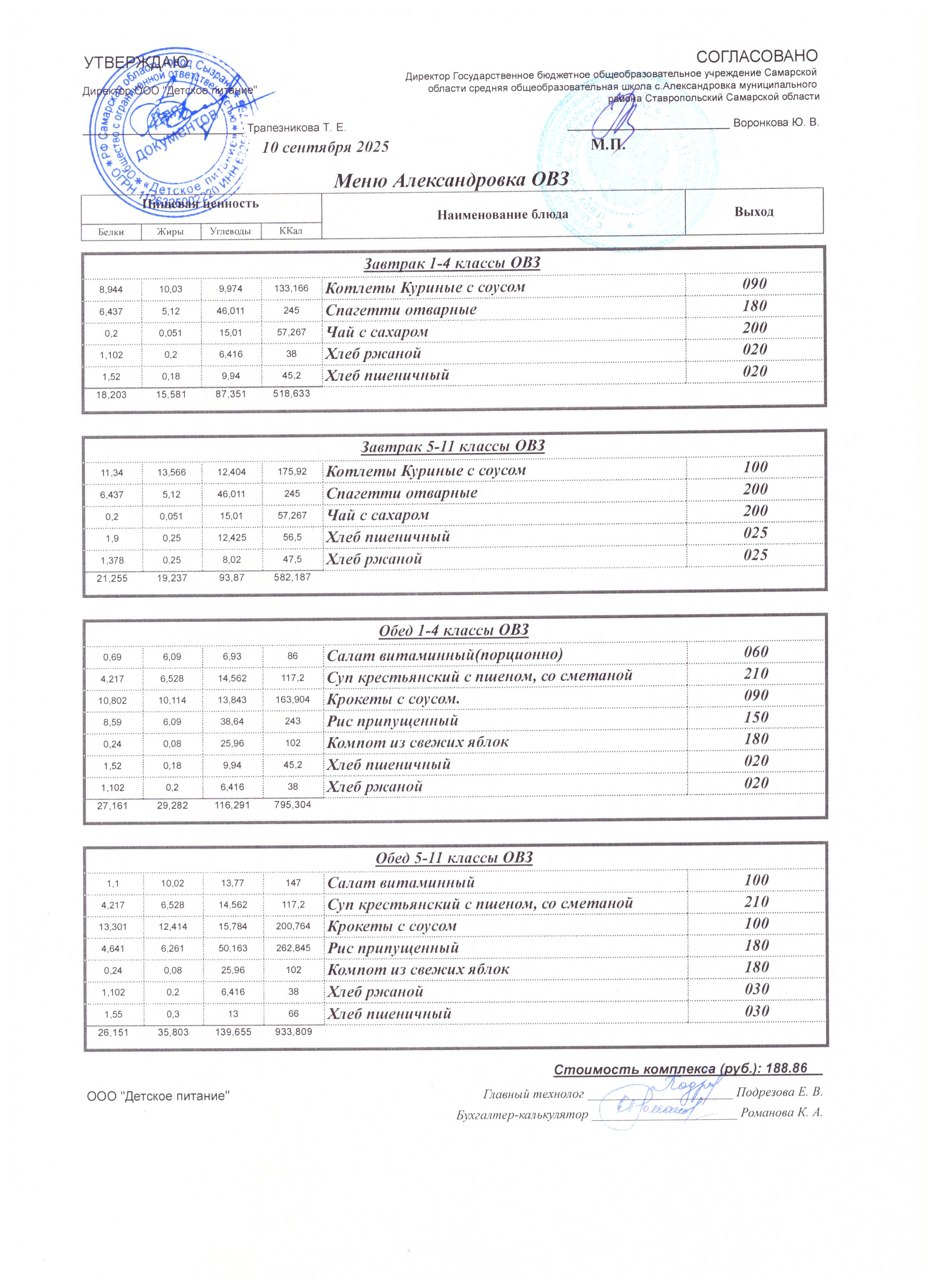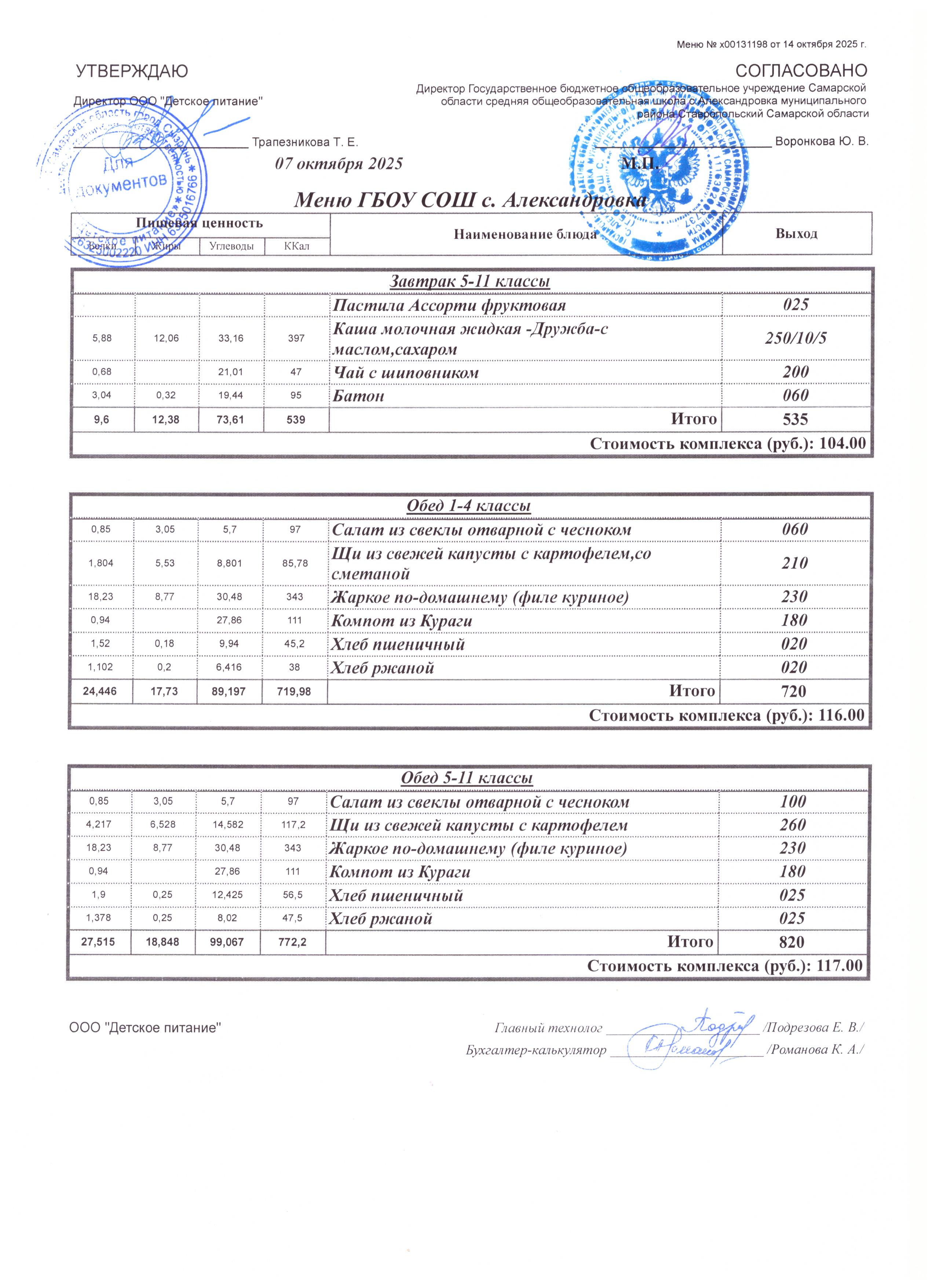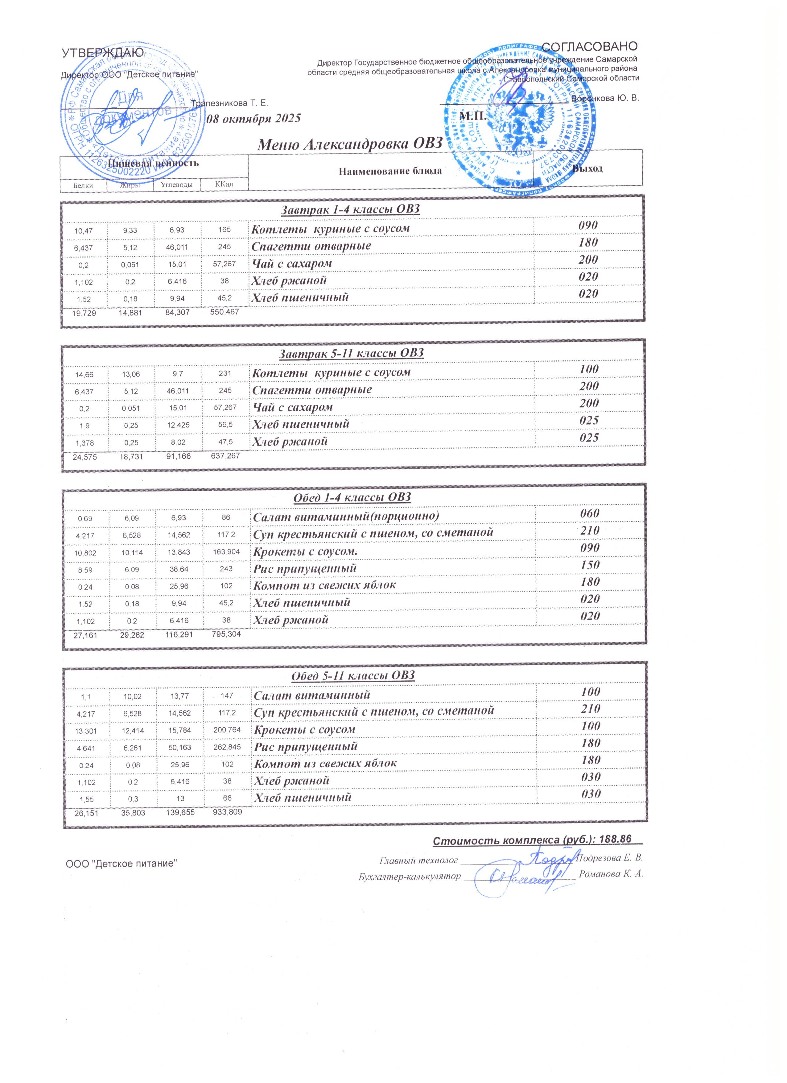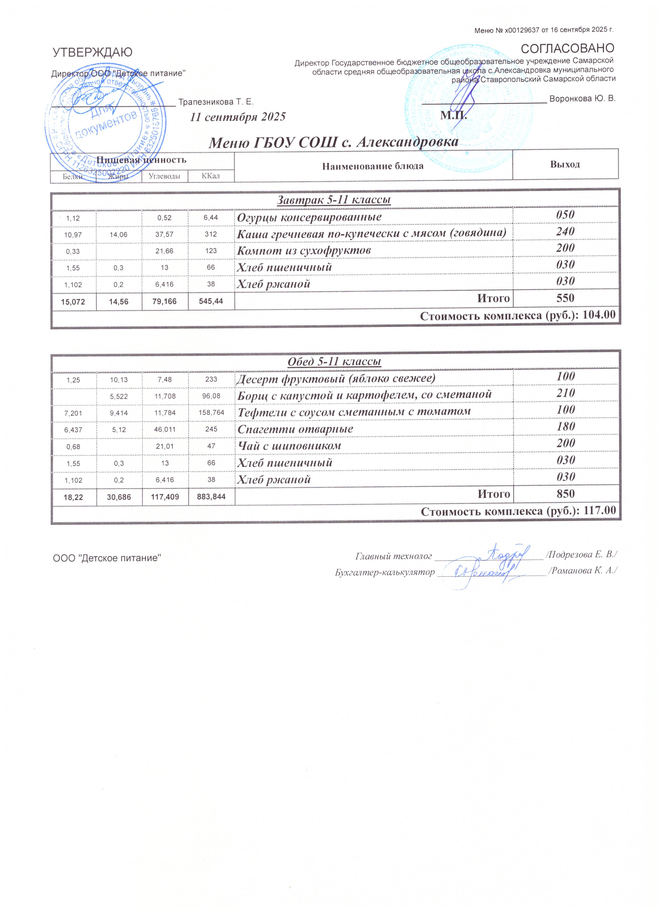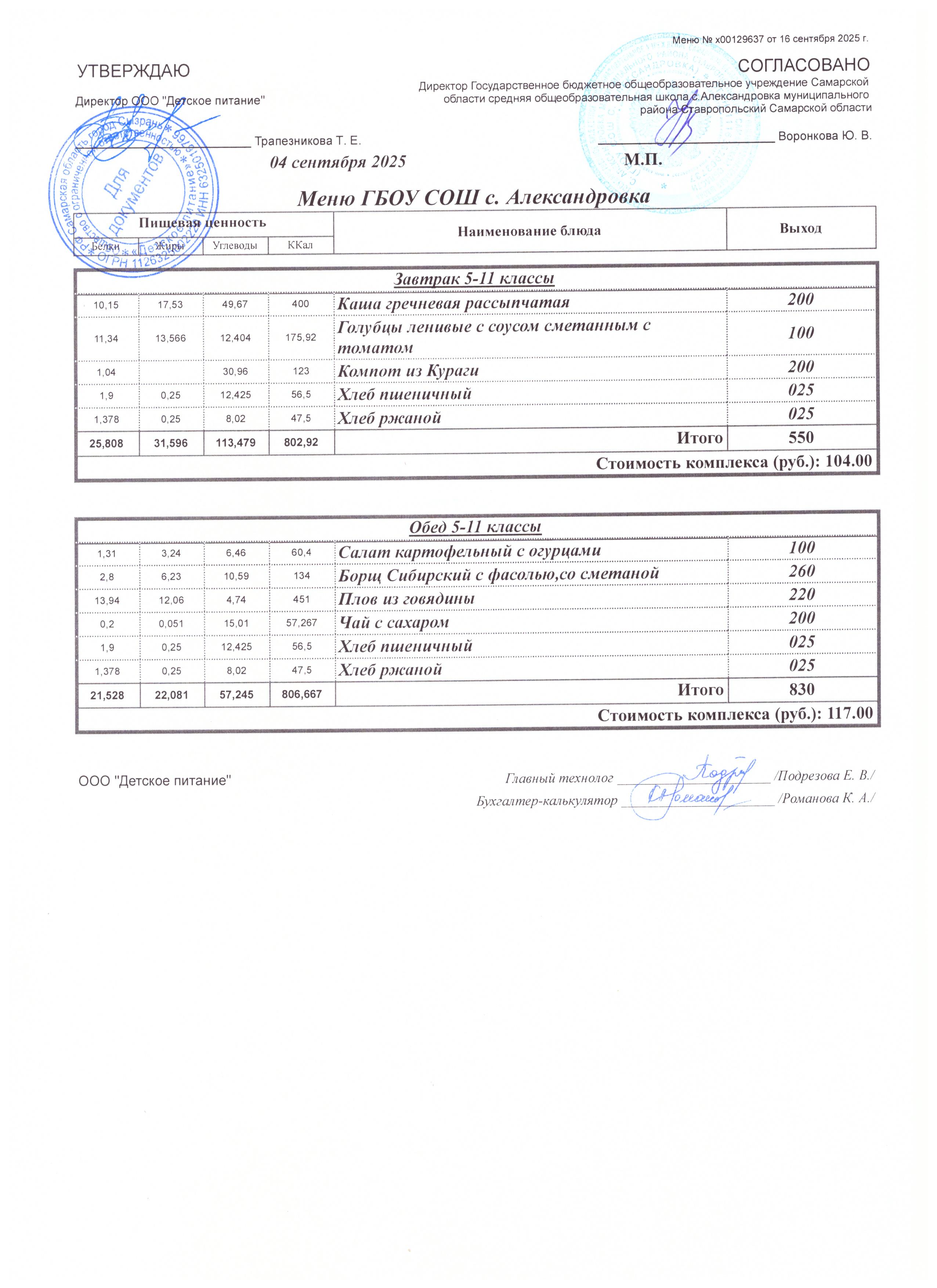 2-х недельное цикличное меню согласованное с территориальным управлением Роспотребнадзора и родительской общественностью