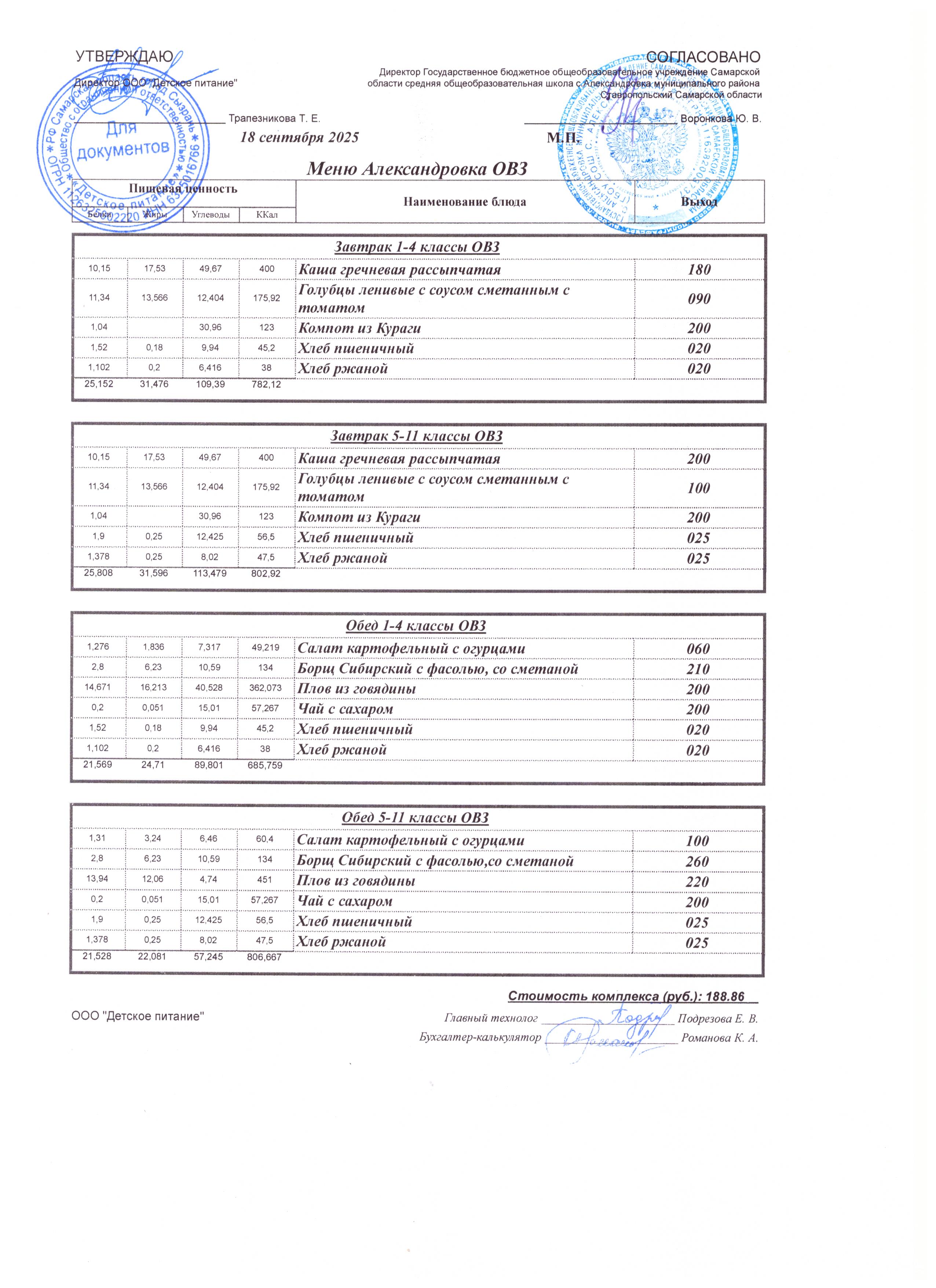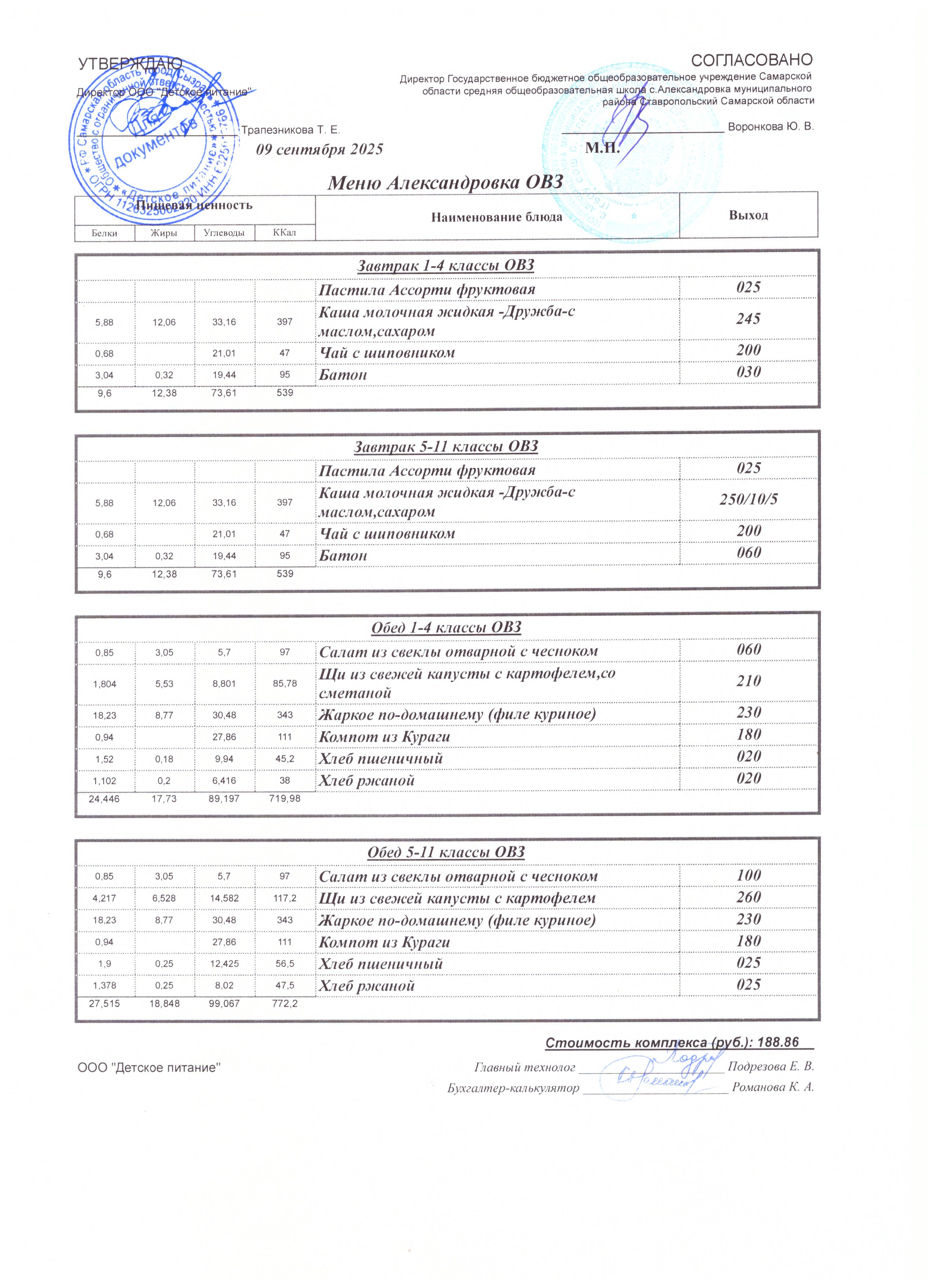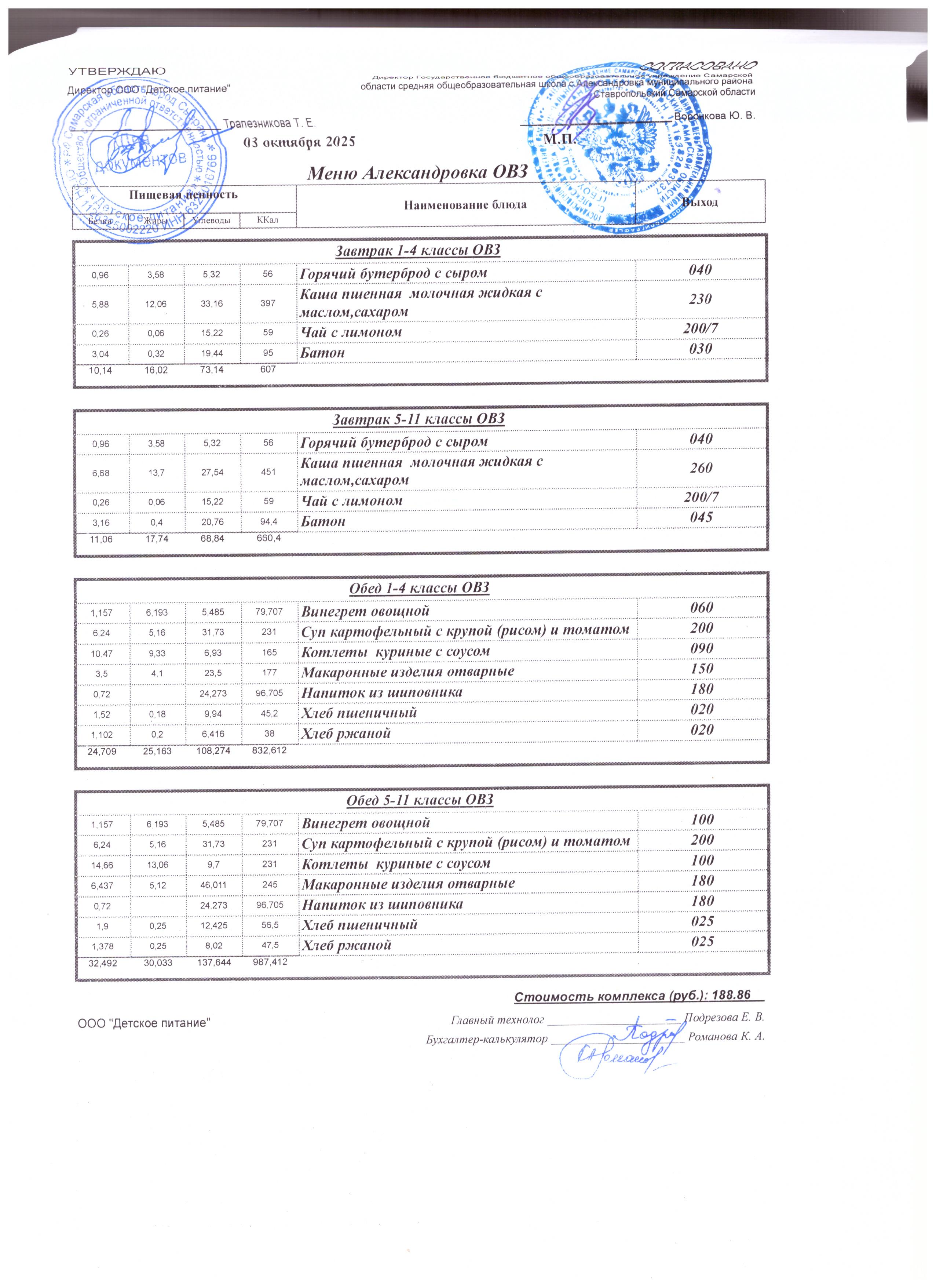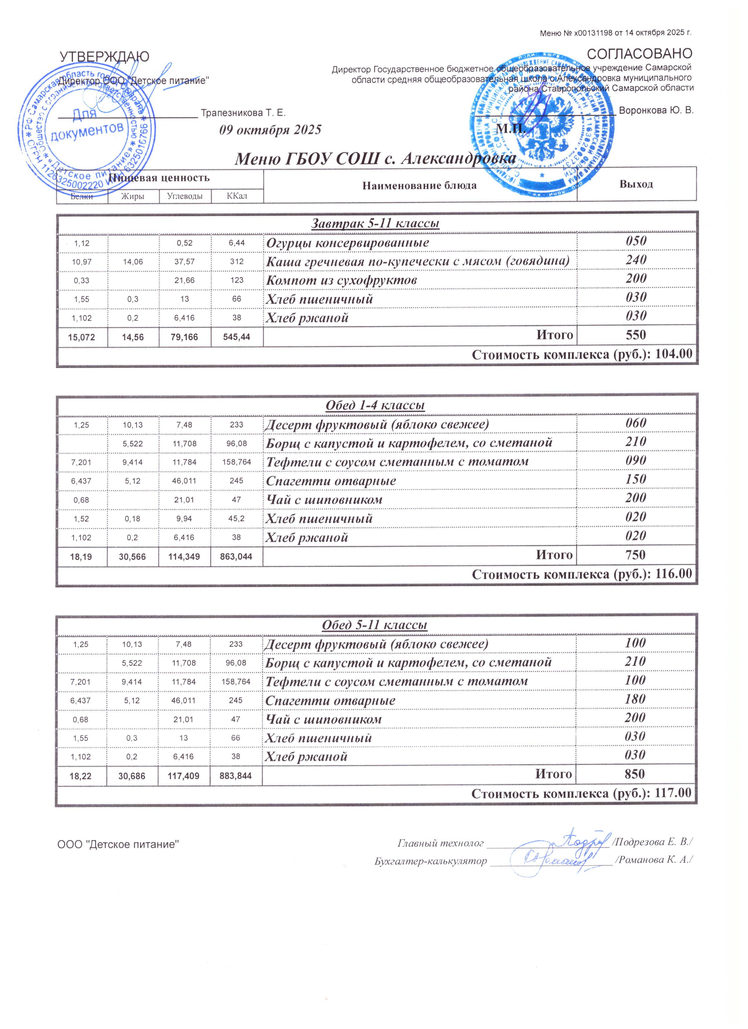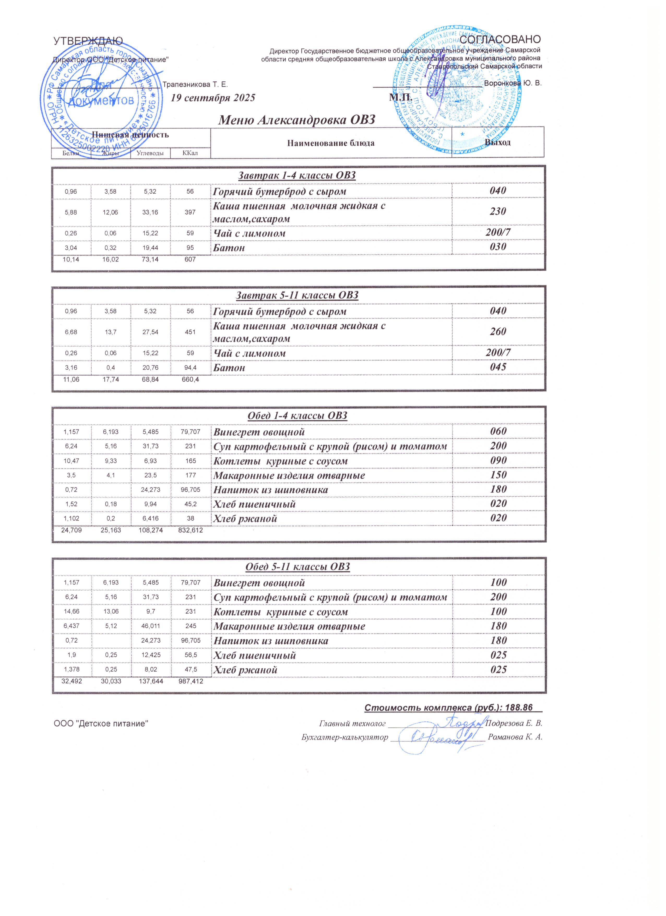 2-х недельное цикличное меню согласованное с территориальным управлением Роспотребнадзора и родительской общественностью