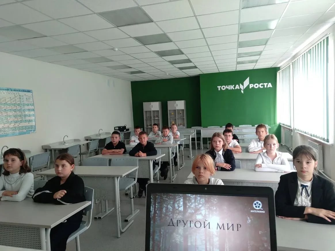 В рамках проекта Киноуроки в школах России ребята 4 класса посмотрели фильм "Другой мир"- картина о будущем, к которому может прийти как отдельный человек, так и всё человечество в том случае, если будет жить и трудиться, основываясь на ценностях созидания, красоты и добра.